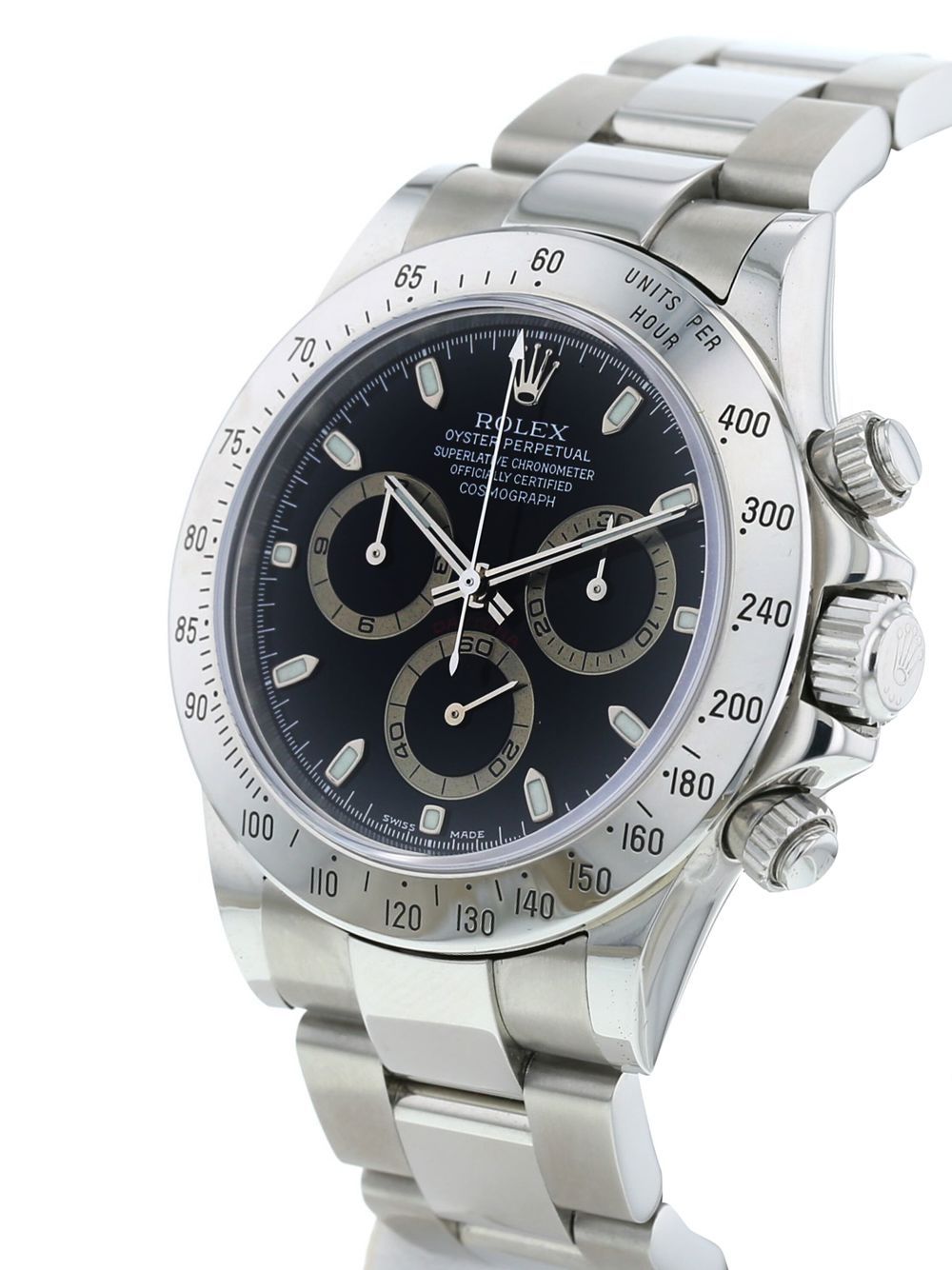 For nearly 60 years, the Rolex Cosmograph Daytona has been at the forefront of chronograph timepieces. Released in 1963 as a homage to the Daytona Races, this model welcomed a new era of the Swiss watch specialists' know-how, taking on a tachymetric scale and new elapsed-time hours and minutes displays as found on this 2000 pre-owned Daytona Cosmograph 40mm.