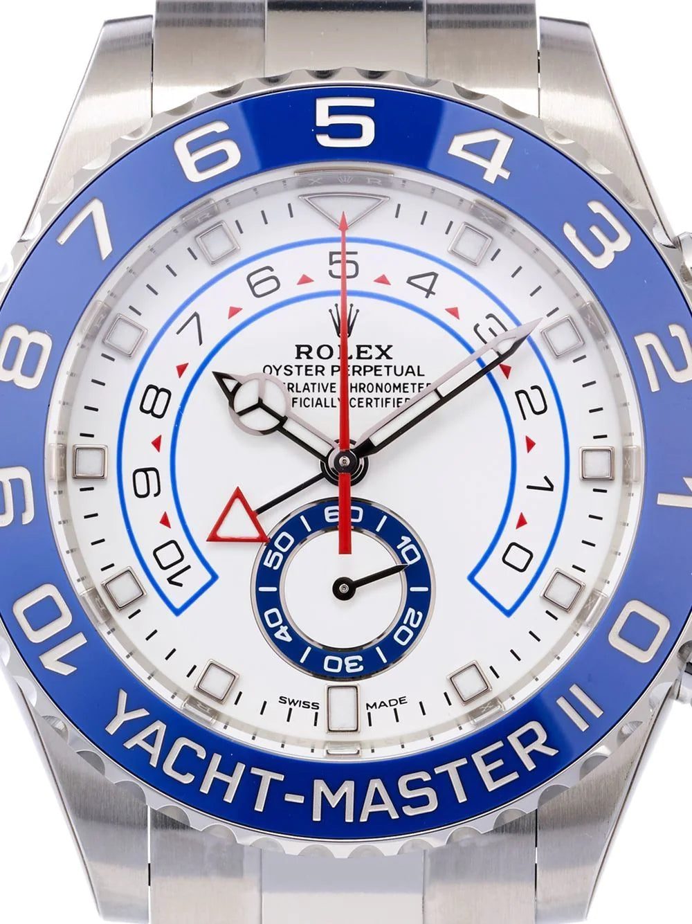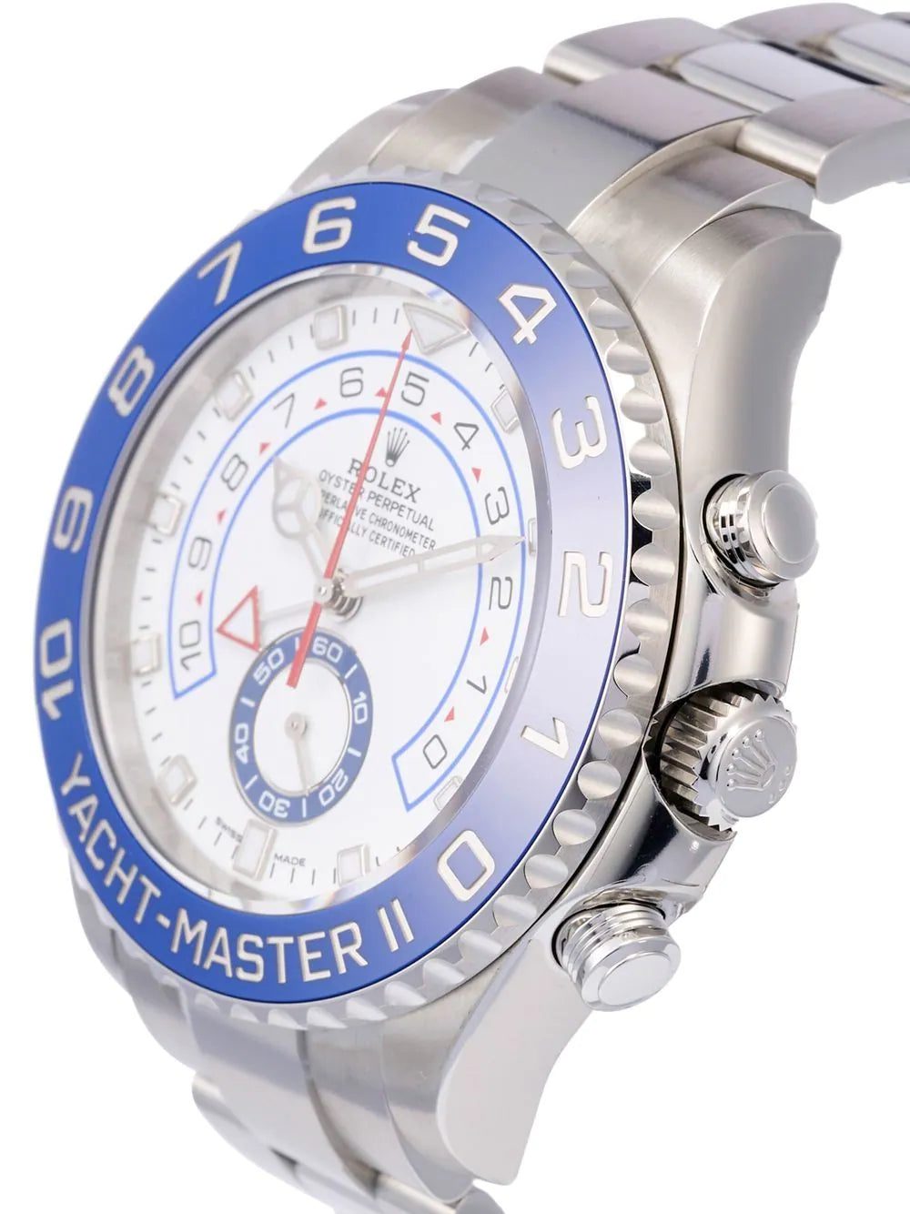 Showcasing Rolex's expertise, the Yacht-Master II 44mm is the only chronograph in the world with a mechanical memory. Redefining the mechanics of the bezel, it acts as a programmable countdown that works in conjunction with the internal mechanism.