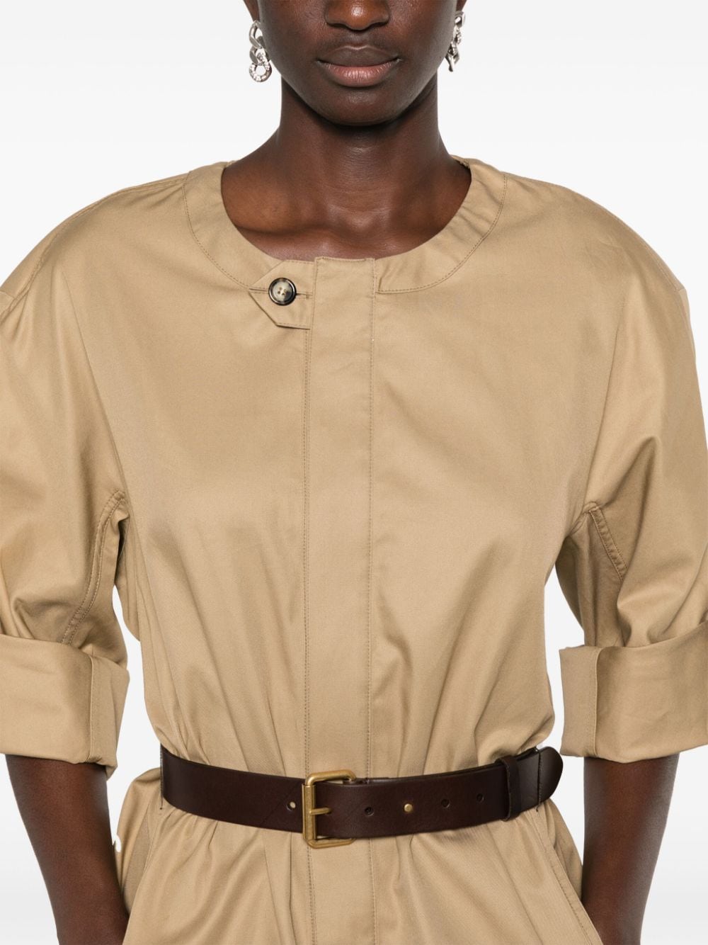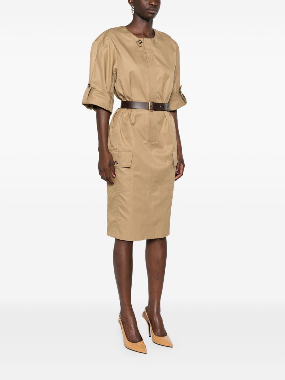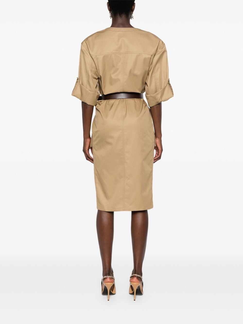 belted cotton twill midi dress