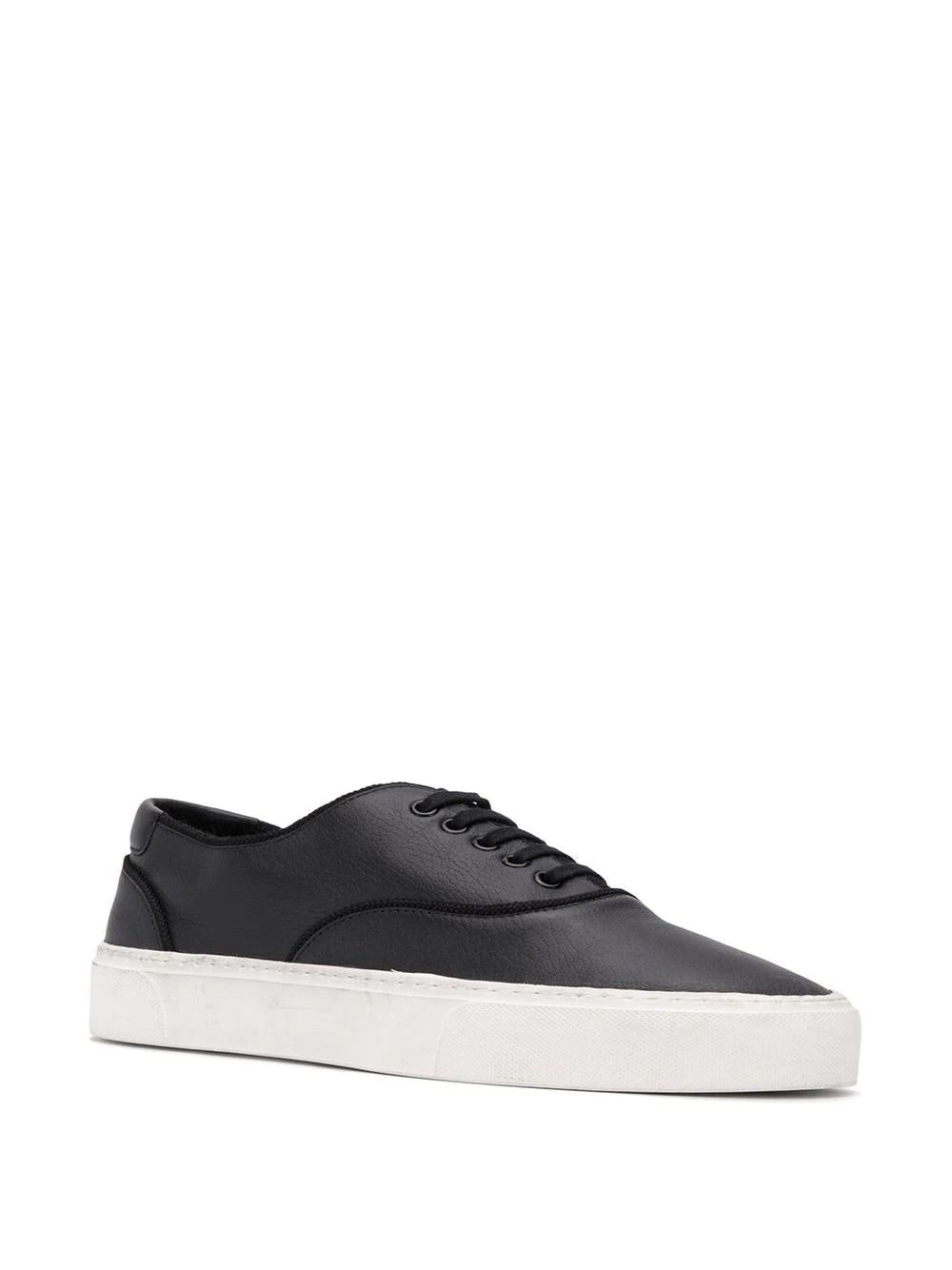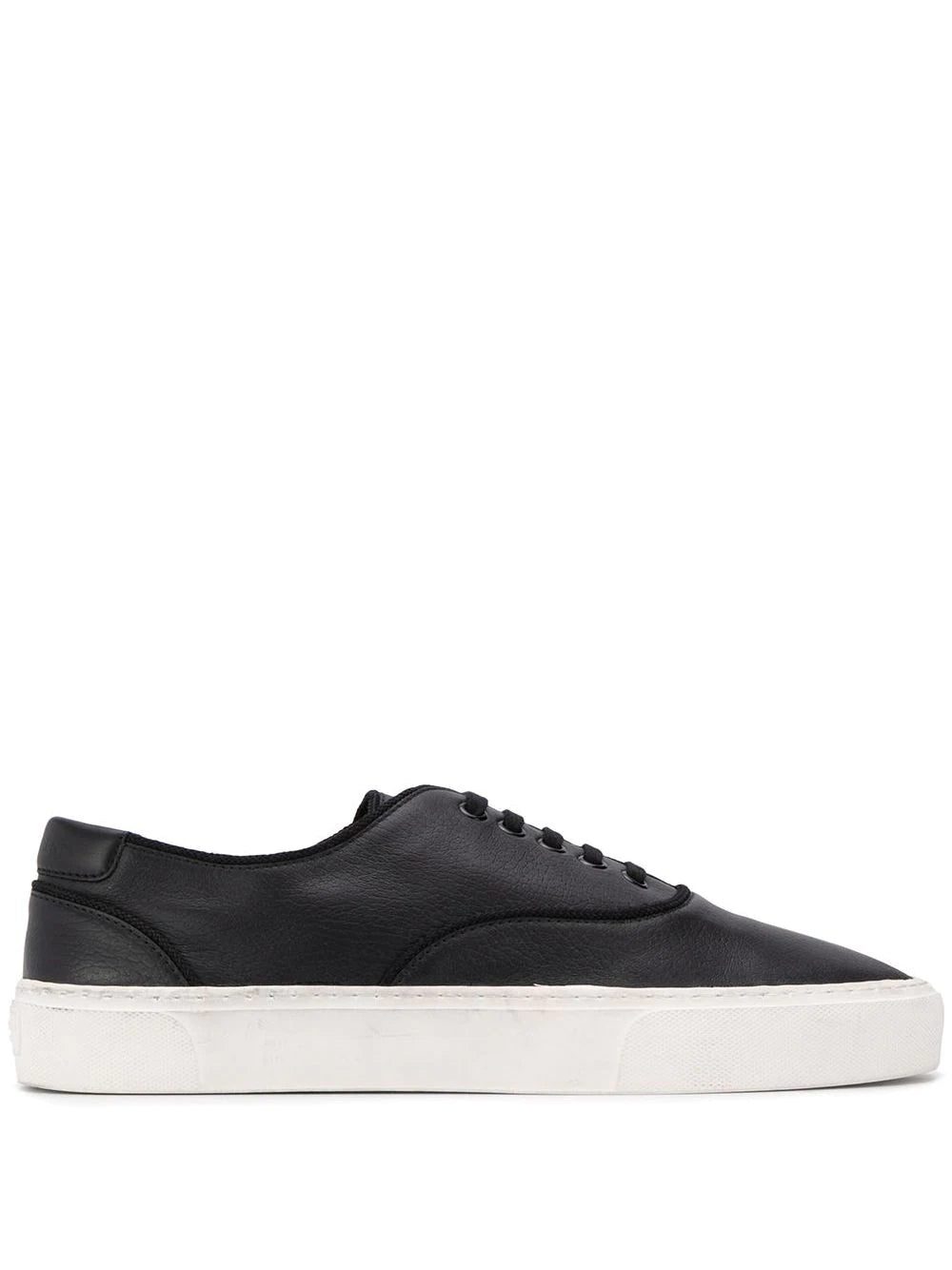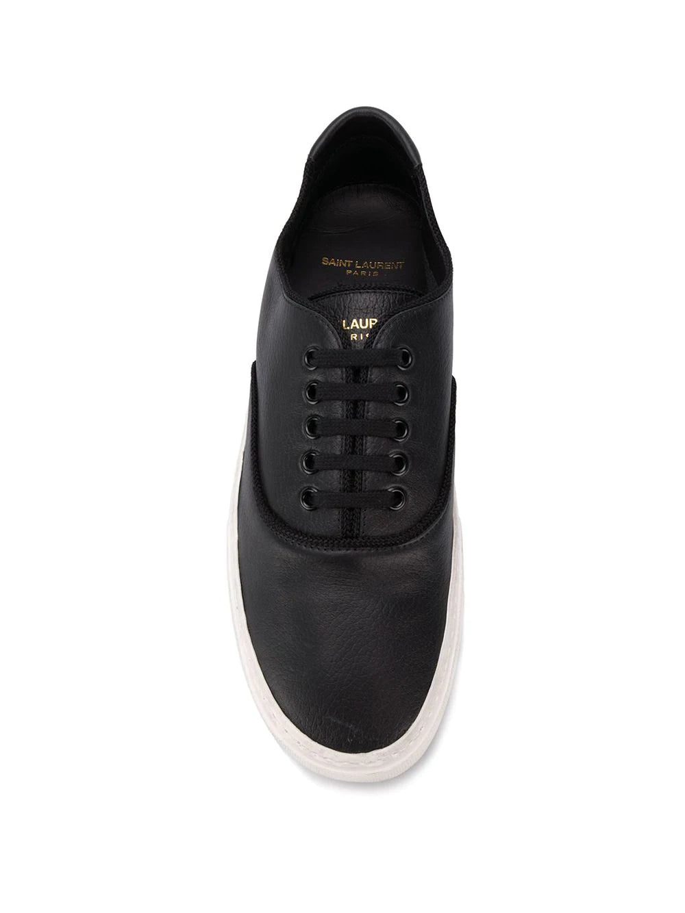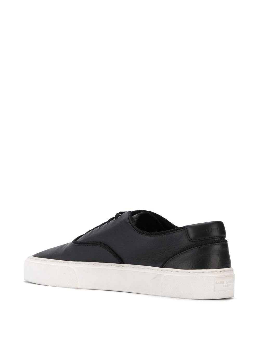 Black leather and rubber black Venice low-top sneakers from Saint Laurent featuring a branded insole, a brand embossed tongue, an almond toe, a front lace up detail, a white rubber sole, a brand embossed heel counter and a contrast white rubber sole.