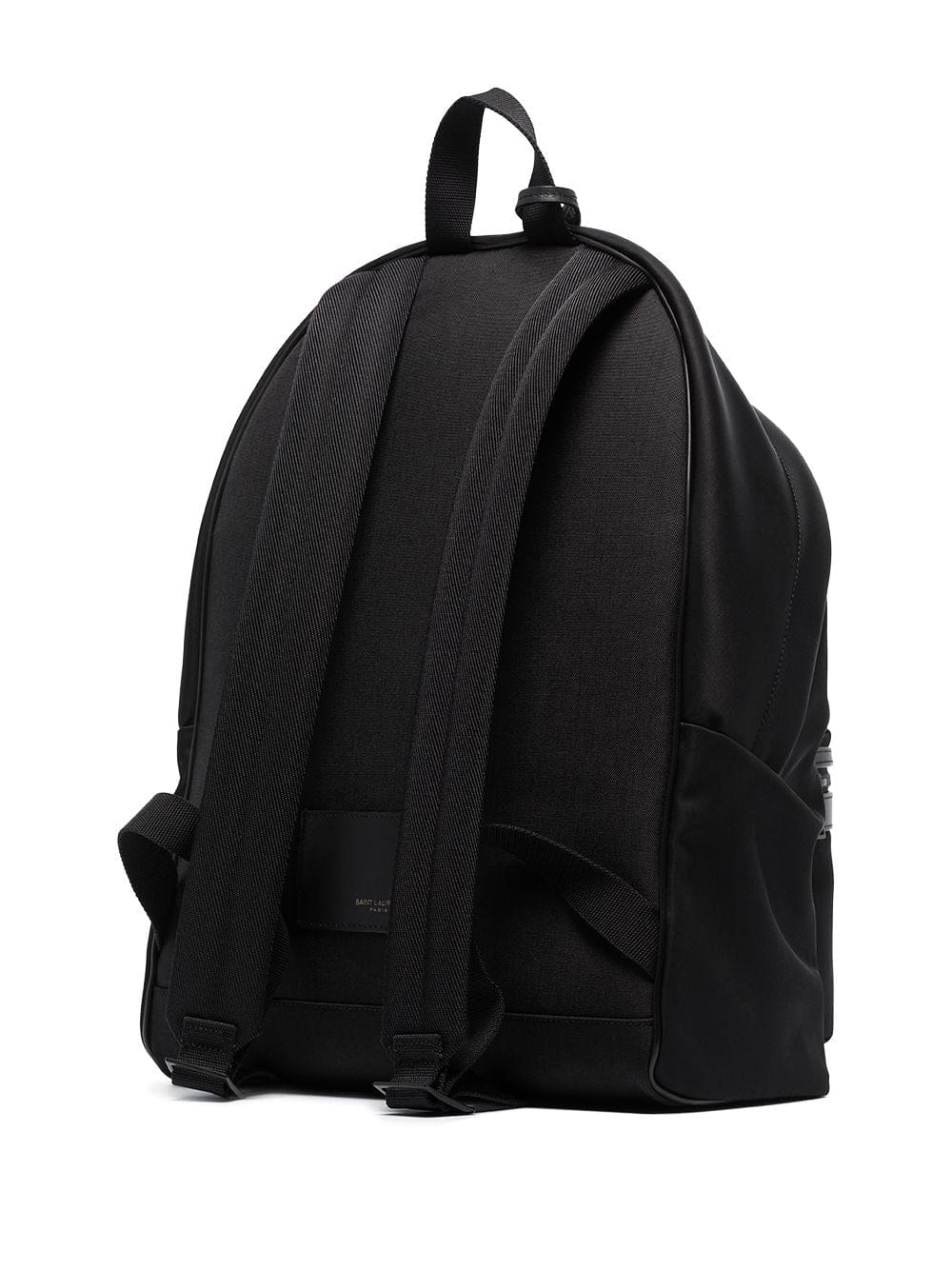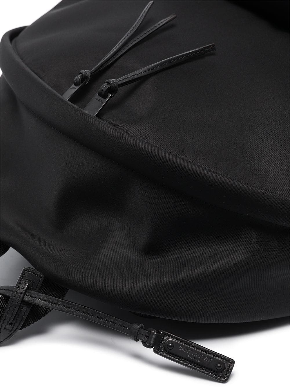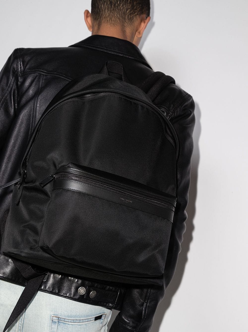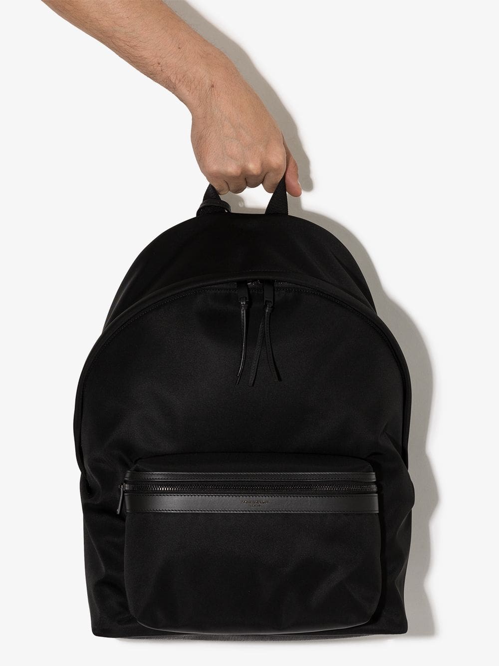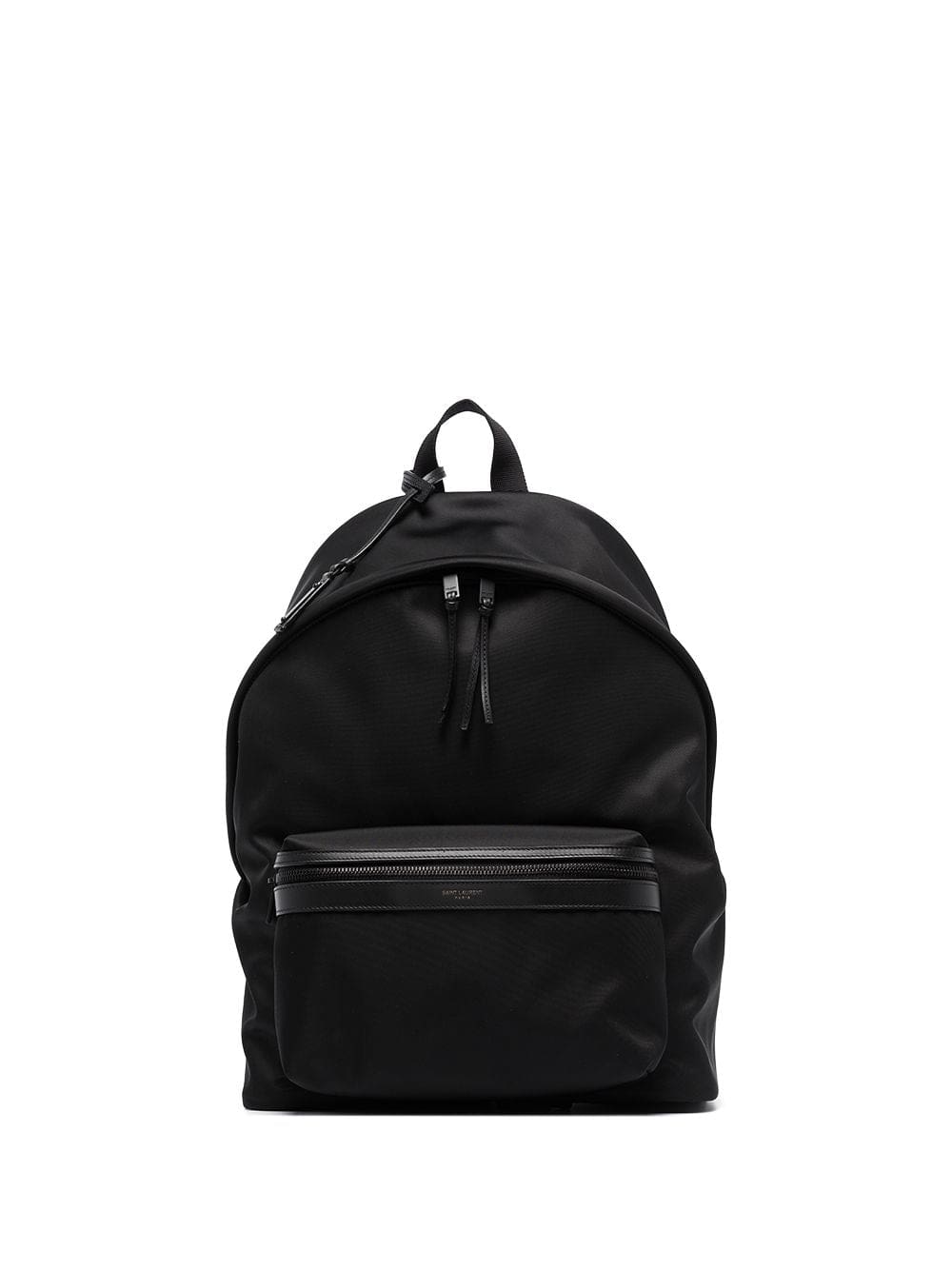 A signature style from the brand, this version of Saint Laurent's City backpack is part of SS22. It is presented in a tonal black colourway and framed with leather trim in the same colourway.