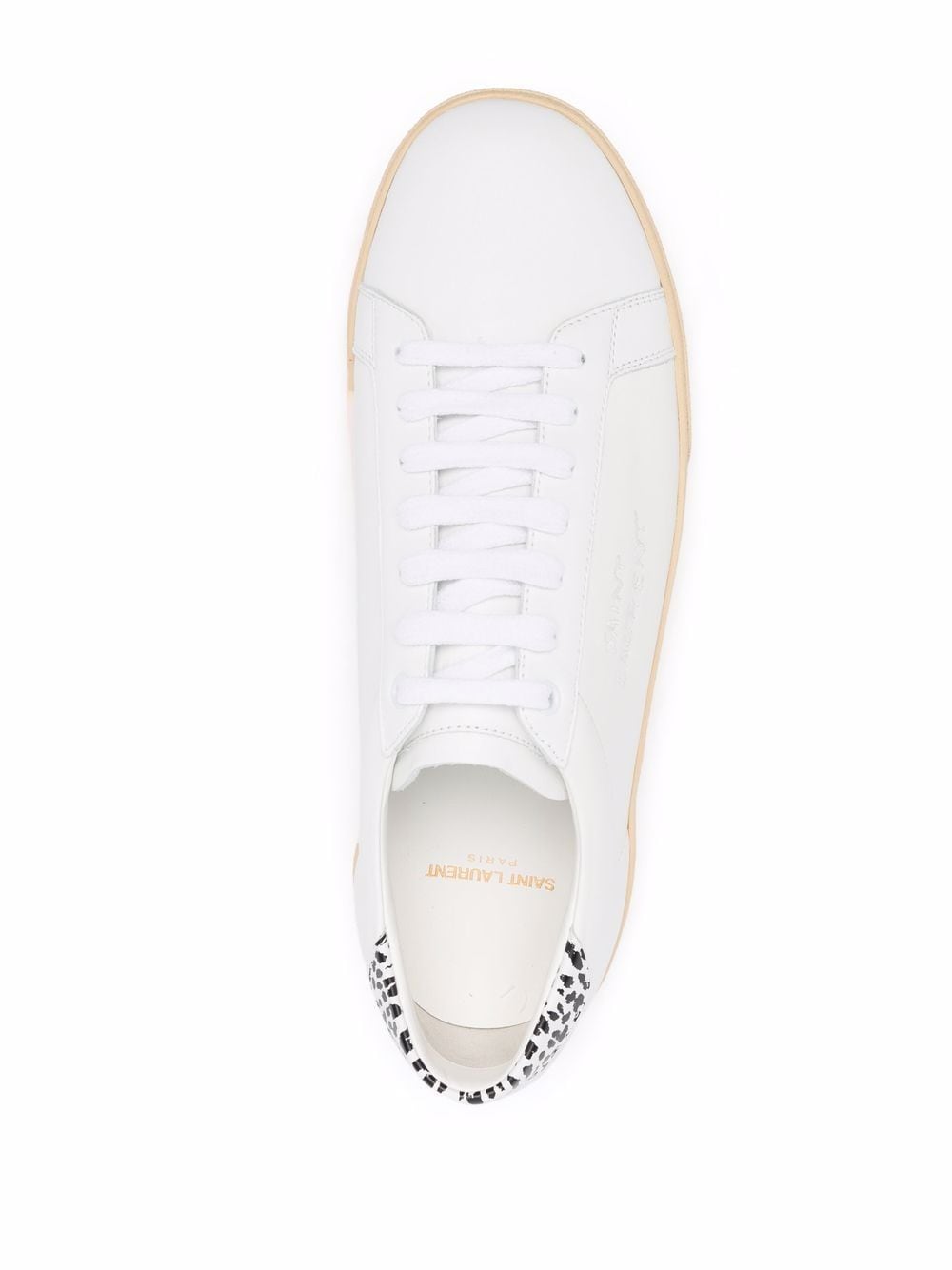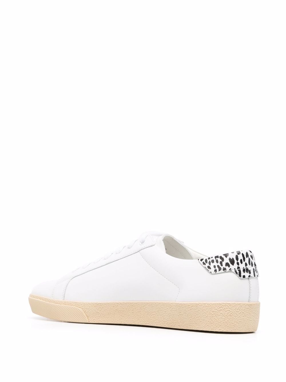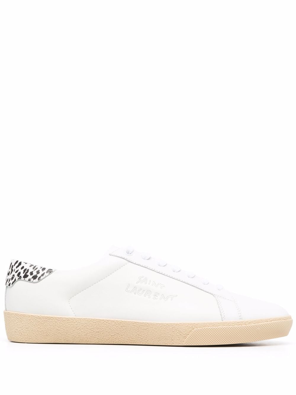 Saint Laurent's subtle Parisian style with a distinct edge is demonstrated in the panelled design of these low-top sneakers. Crafted from white leather, they are designed with a leopard-print heel counter and embroidered logo to the side.