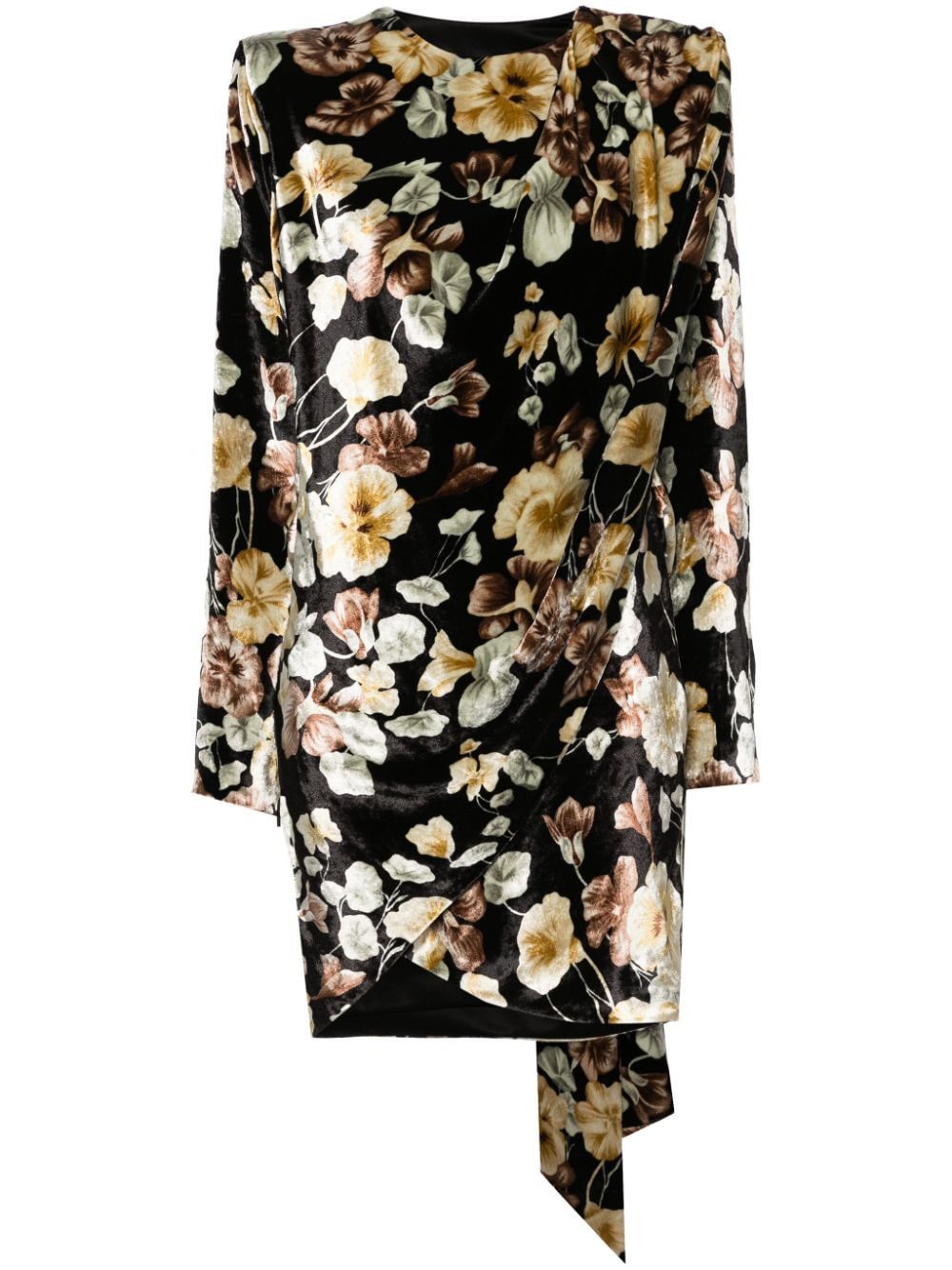 Cut from velvet to a wrap construction, this Saint Laurent dress drapes to an asymmetric hemline for a modernised twist.