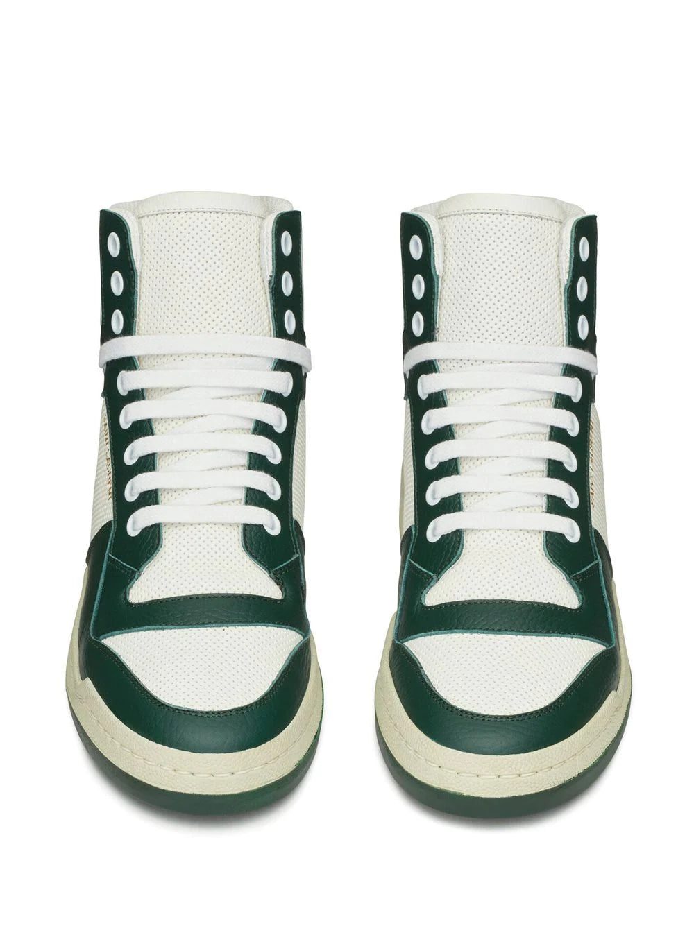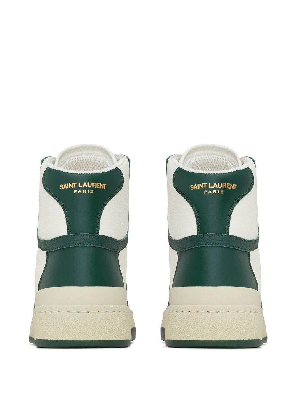 These Saint Laurent sneakers take on a retro-inspired silhouette. The pair are anchored with contrasting black and white panels of leather for a traditional approach to sneakers.