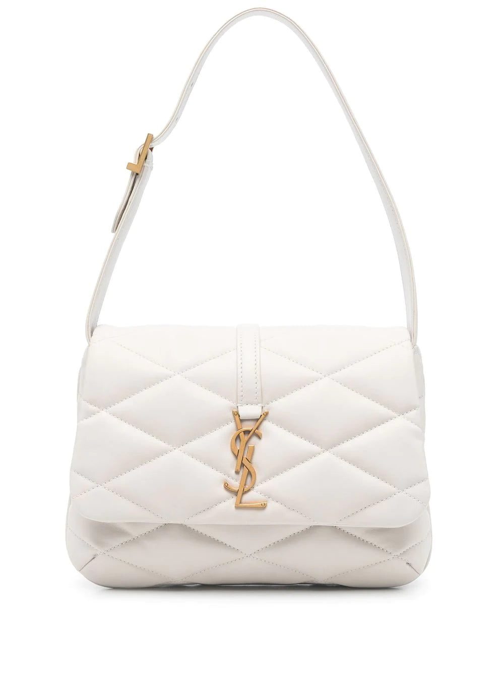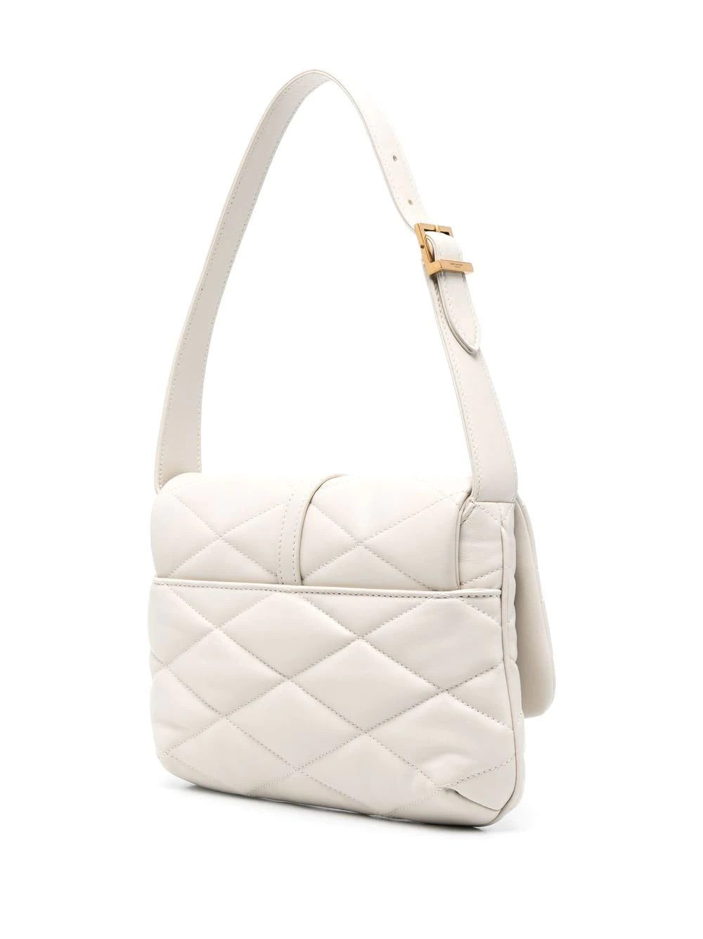 Cream calf leather Le 57 quilted shoulder bag from SAINT LAURENT featuring quilted, gold-tone logo plaque, adjustable shoulder strap and foldover top with magnetic fastening.