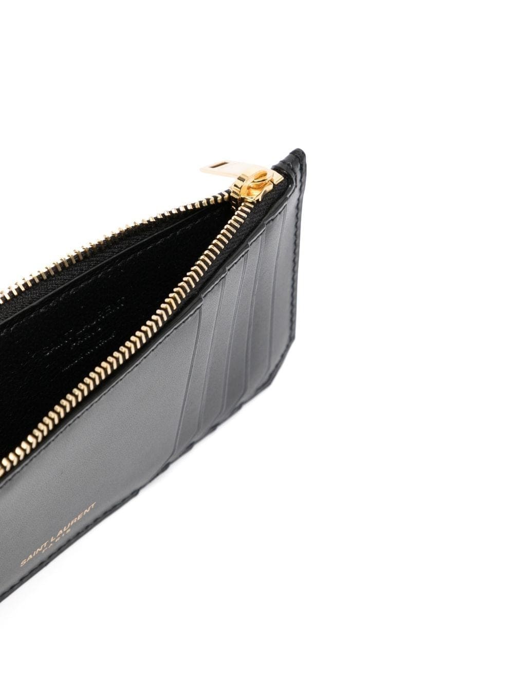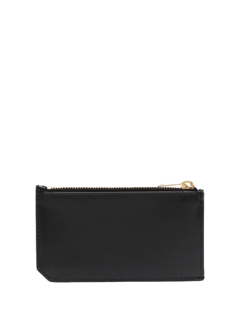 black calf leather asymmetric design top zip fastening card slots
