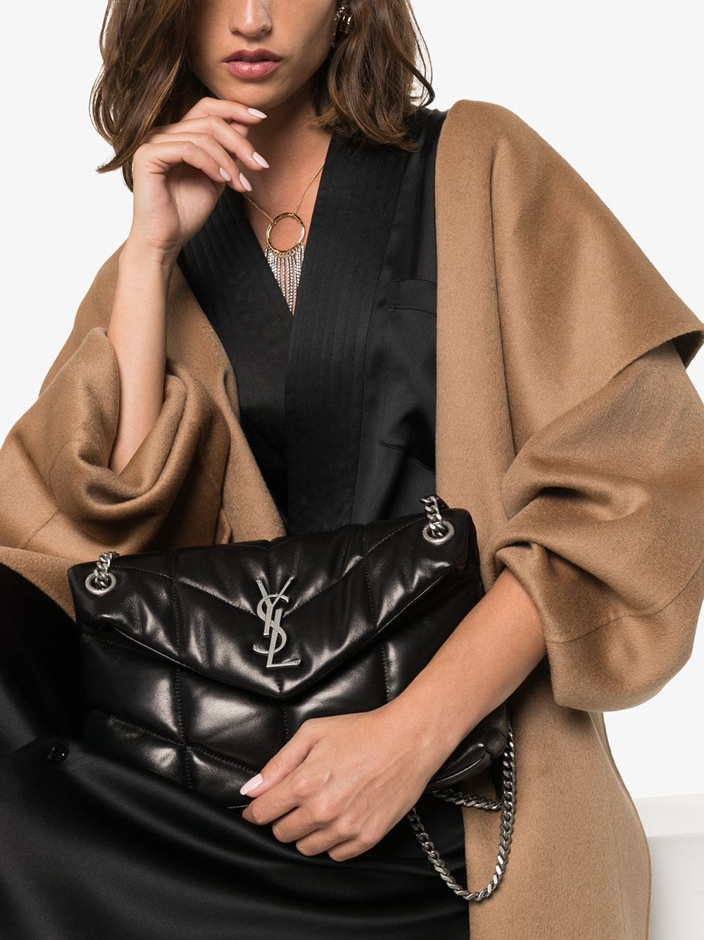 Black Padded quilting Made from smooth leather Adjustable sliding chain and leather shoulder strap Fold-over flap with magnetic fastening YSL logo plaque at front Grosgrain lining with zip pocket Silver-tone metal hardware