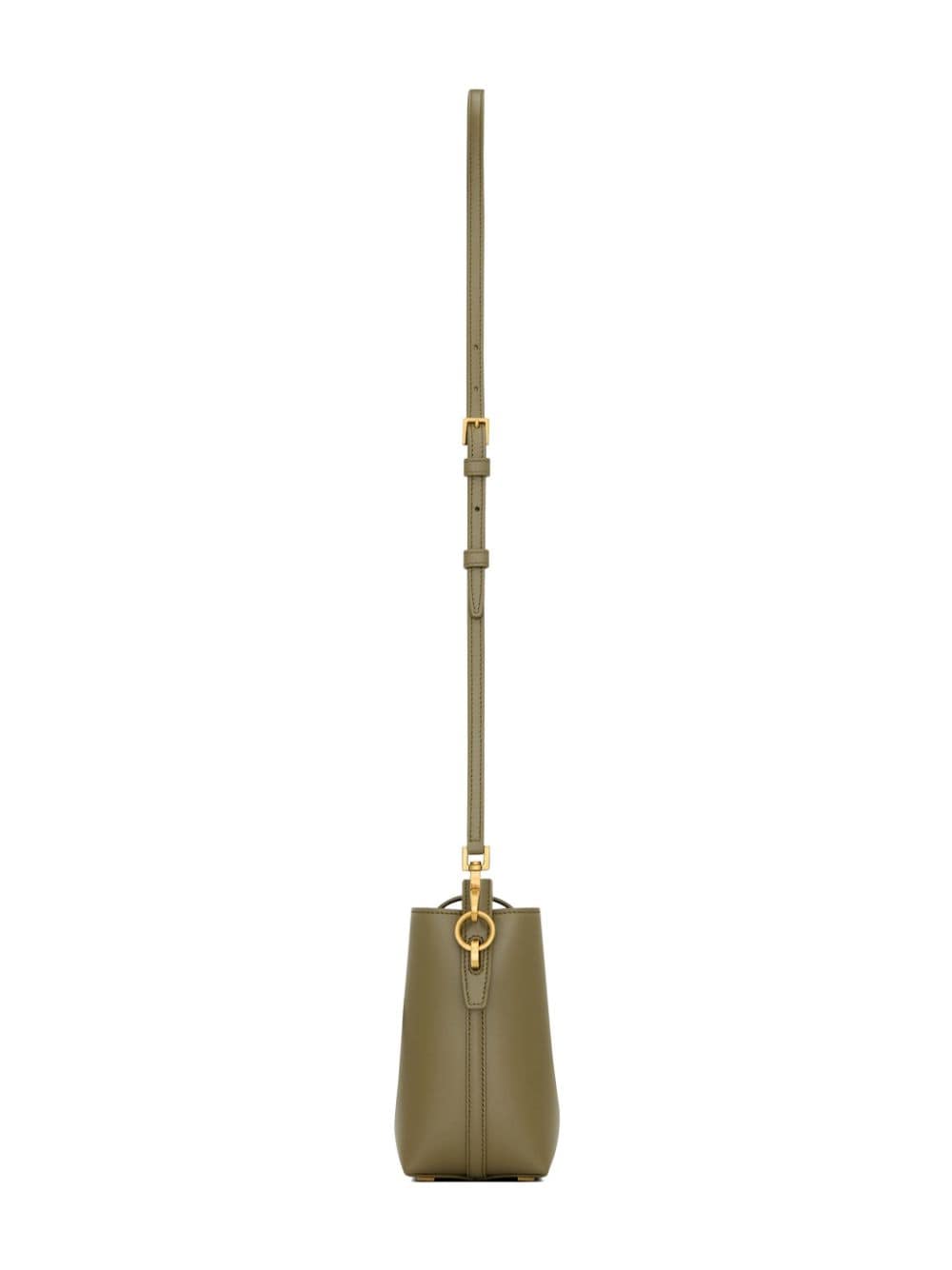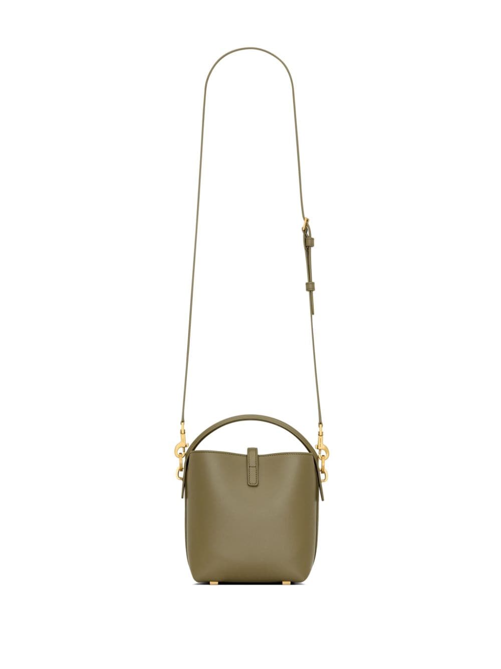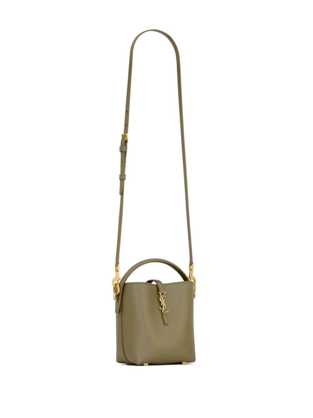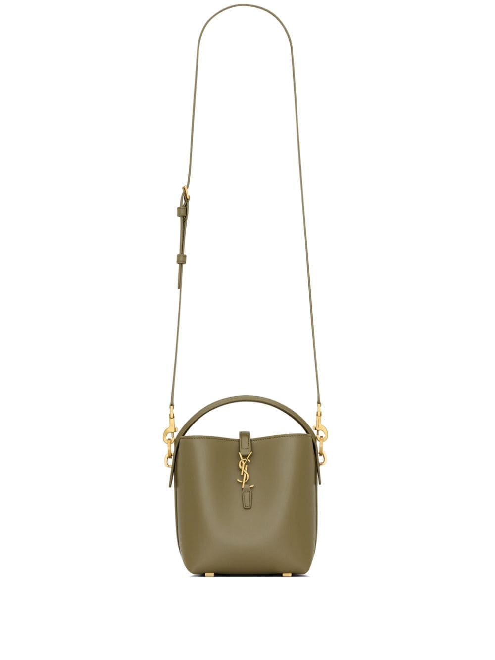 Saint Laurent introduces the mini iteration of its Le 37 bucket bag. Crafted from 'shiny' leather in Italy, it boasts the label's signature Cassandre logo plaque on the front in polished gold-tone hardware.