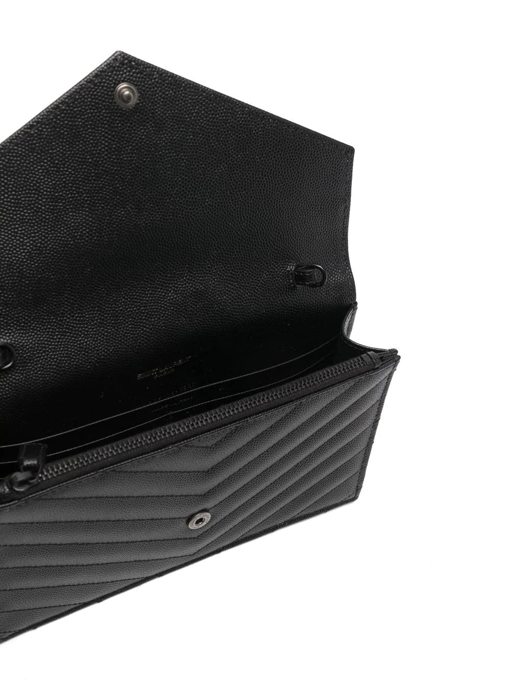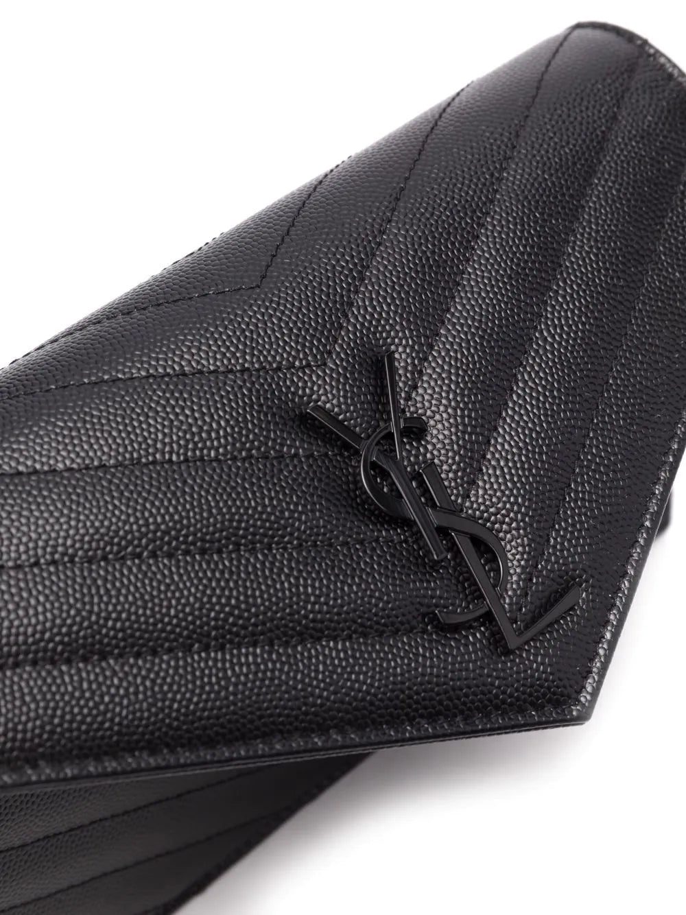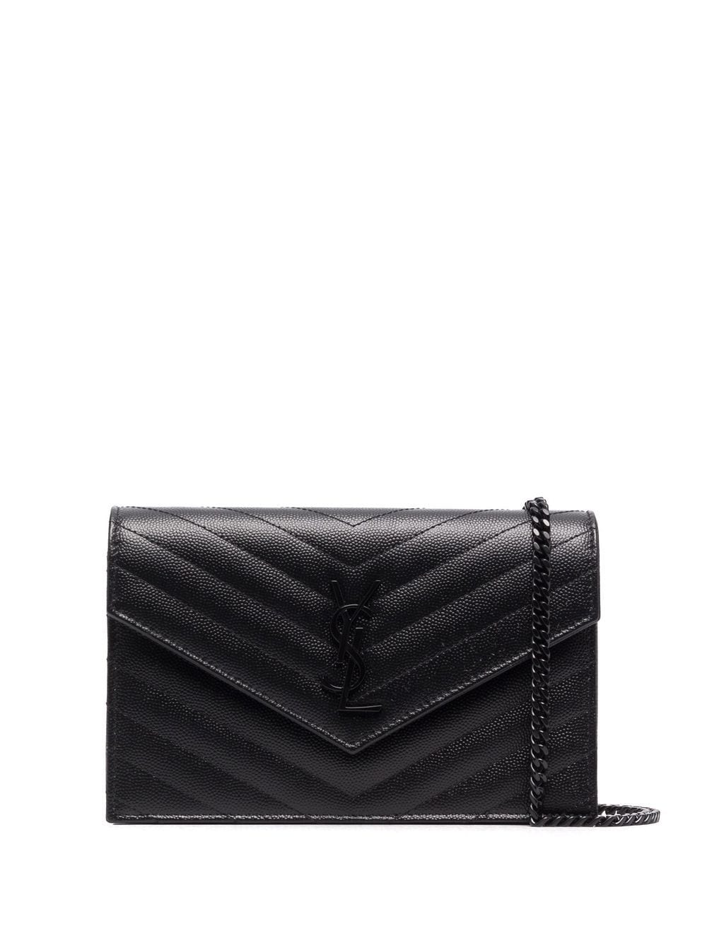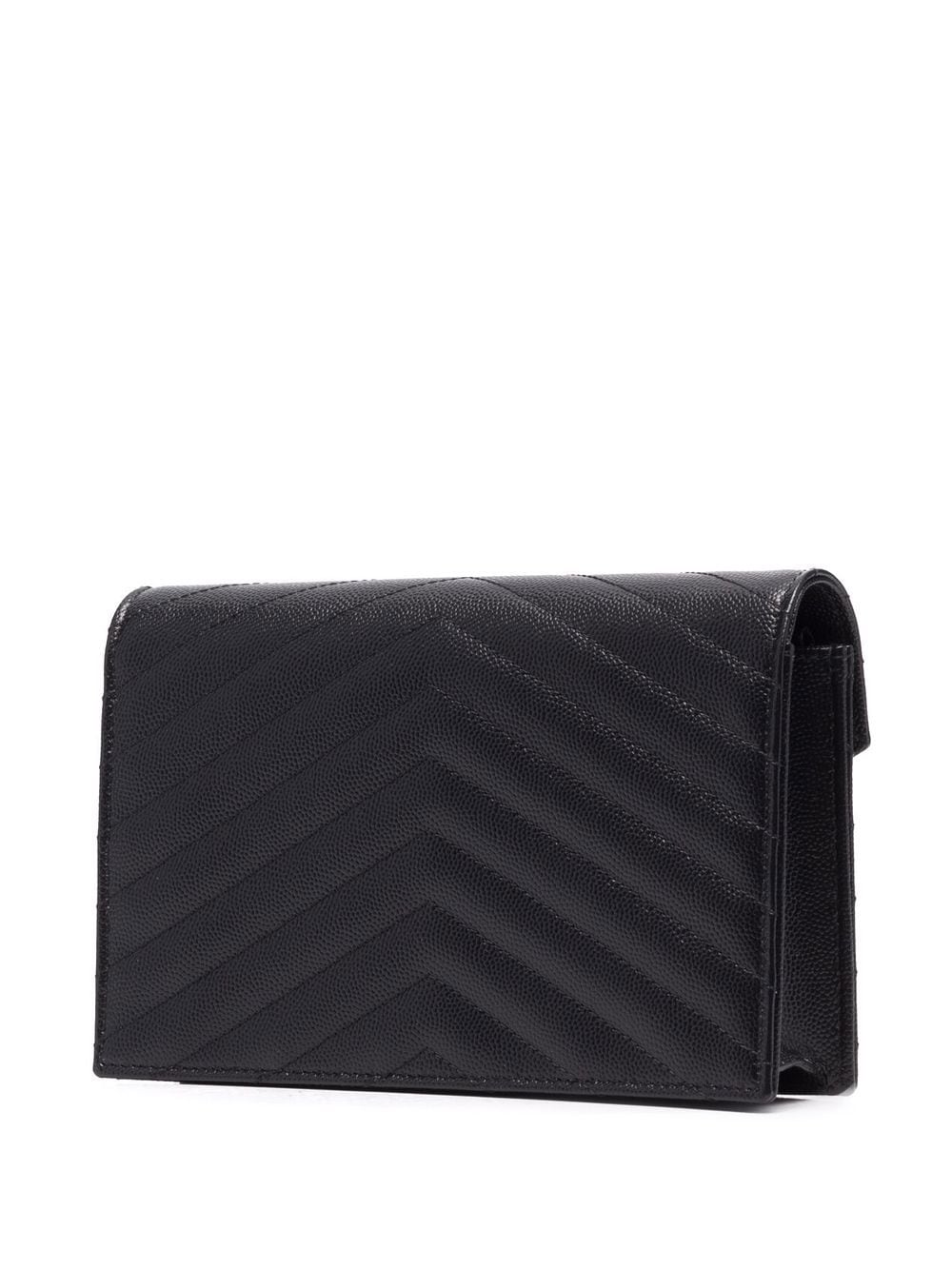 Embellished with Saint Laurent's most recognizable motif, its YSL monogram plaque, this wallet-on-chain is part of the House's SS22 collection and is crafted from black leather with a grained finish.