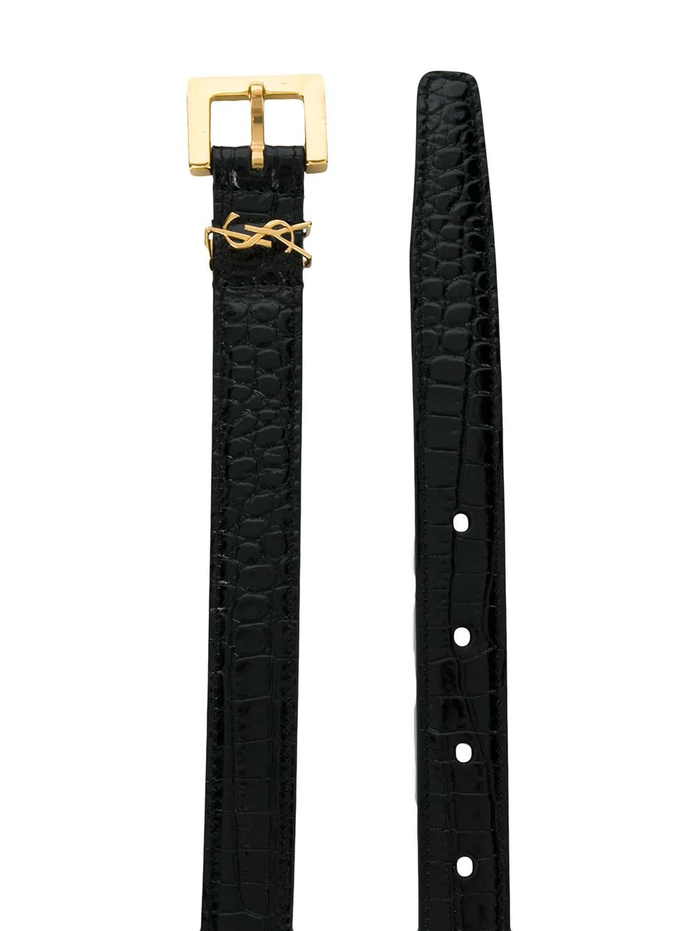With every new season collection, Saint Laurent continues to reference the rich archive of founder Yves Saint Laurent. Crafted from black leather with a crocodile effect, this belt features a square buckle and a gold-tone monogrammed loop.