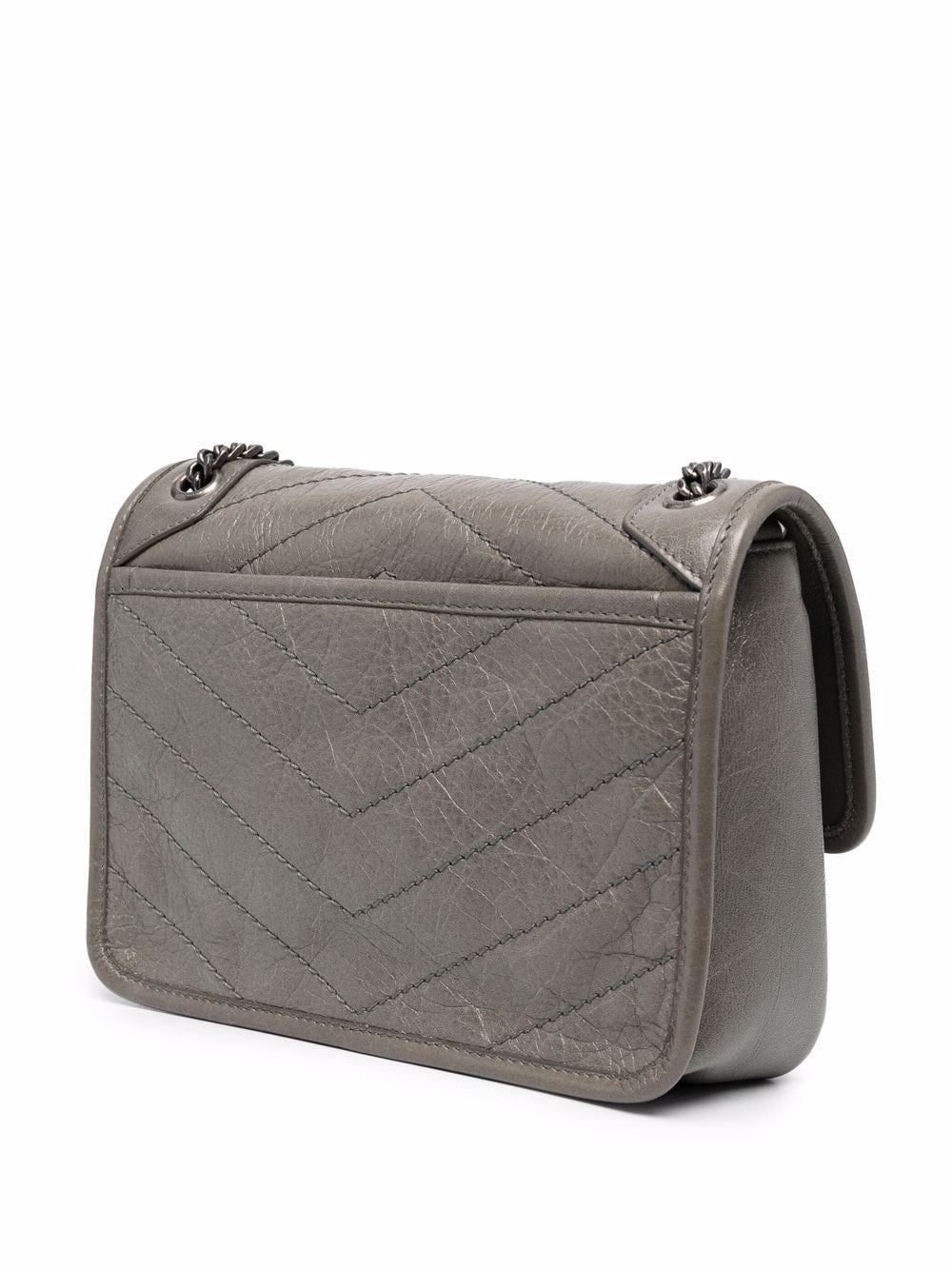Designed with versatility in mind, this Niki shoulder bag is presented in a khaki-grey hue. Its leather-made design is finished with Saint Laurent’s iconic YSL plaque to the front for a recognisable look.