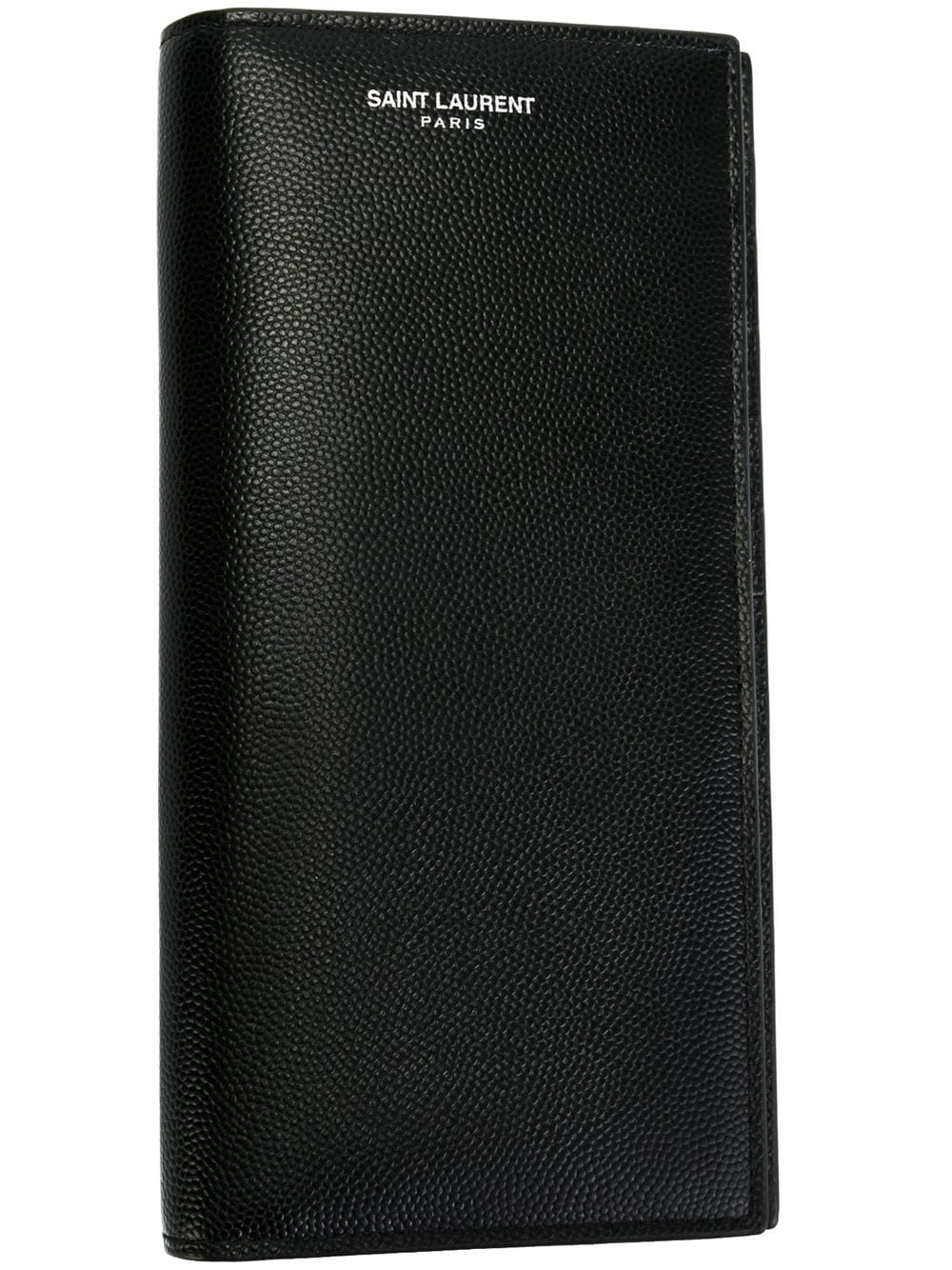 Take a trip to Paris. But not without this black calf leather Paris continental wallet from Saint Laurent. Bon voyage. Featuring a foldover top, a front embossed logo stamp, a textured leather detail, an internal zipped pocket and multiple interior card slots.