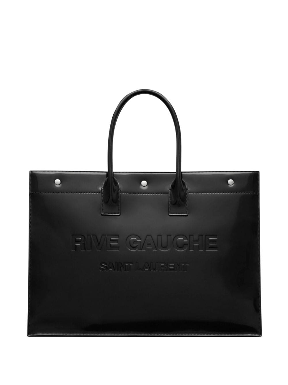 Saint Laurent's Rive Gauche bag is known for its roomy interior and minimalist design. This iteration comes in matte black leather with tonal branding debossed to the front.