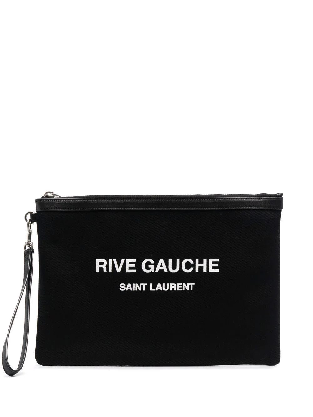 Saint Laurent's canvas clutch is emblazoned with 'Rive Gauche' across the front in bold letters - the name of the first-ever ready-to-wear boutique the brand opened in 1966. The contrasting white hue makes it stand out all the more.