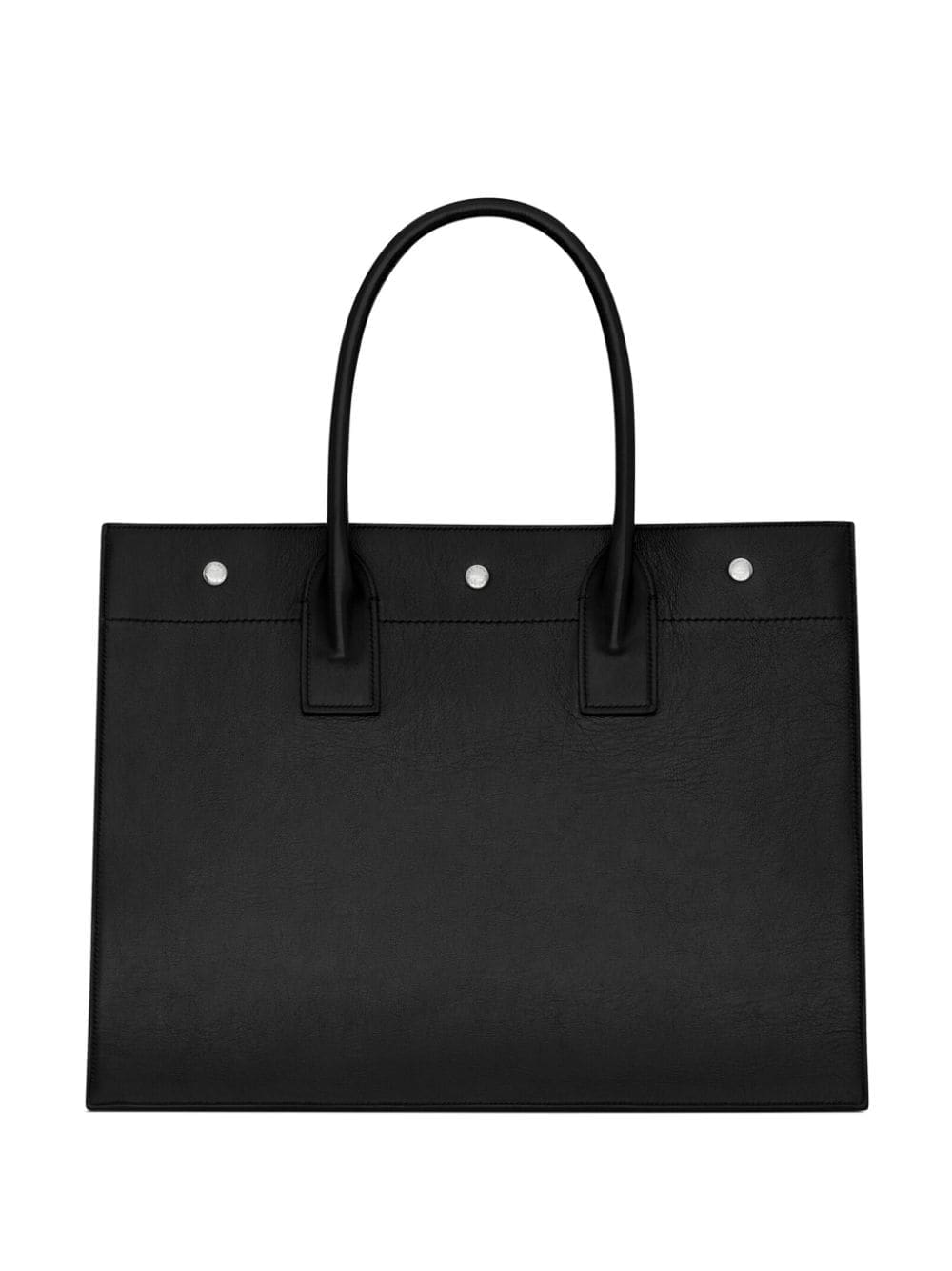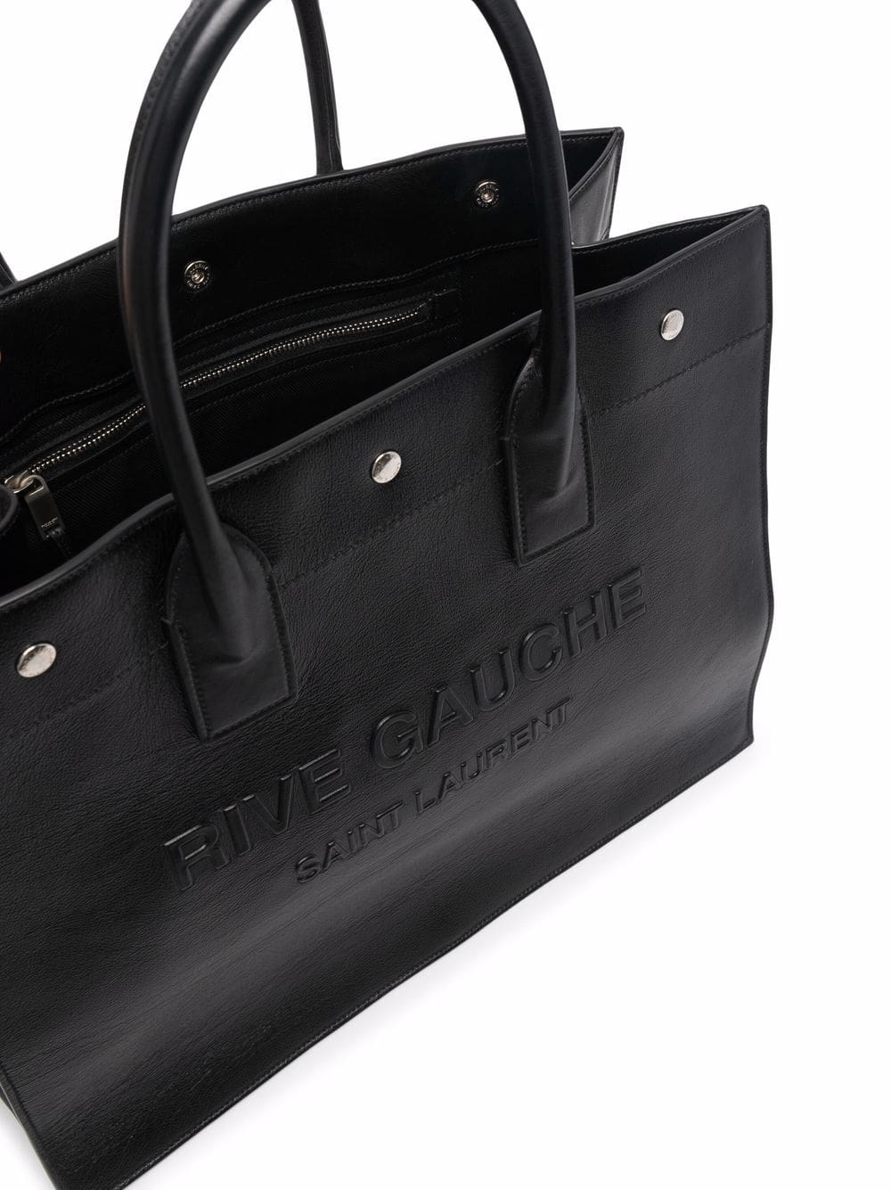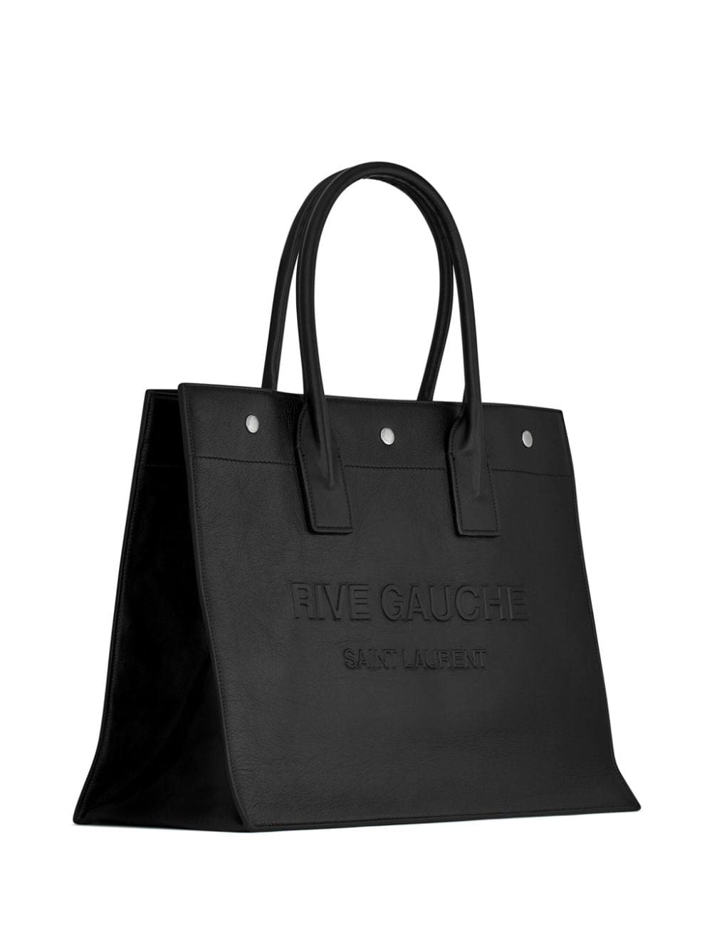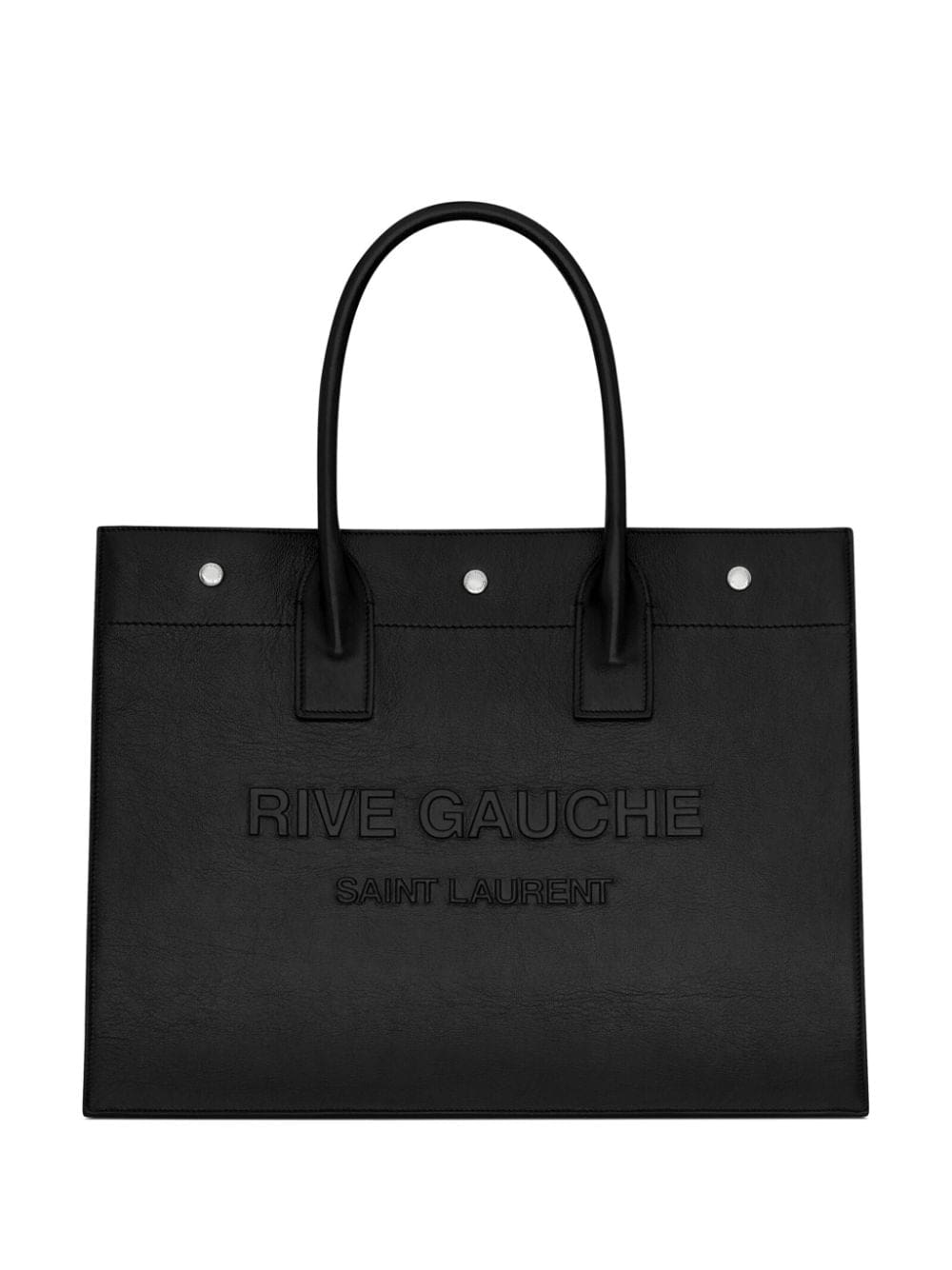 Saint Laurent's Rive Gauche bag is known for its roomy interior and minimalist design. This iteration comes in matte black leather with tonal branding embossed to the front.Â