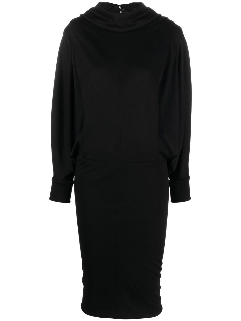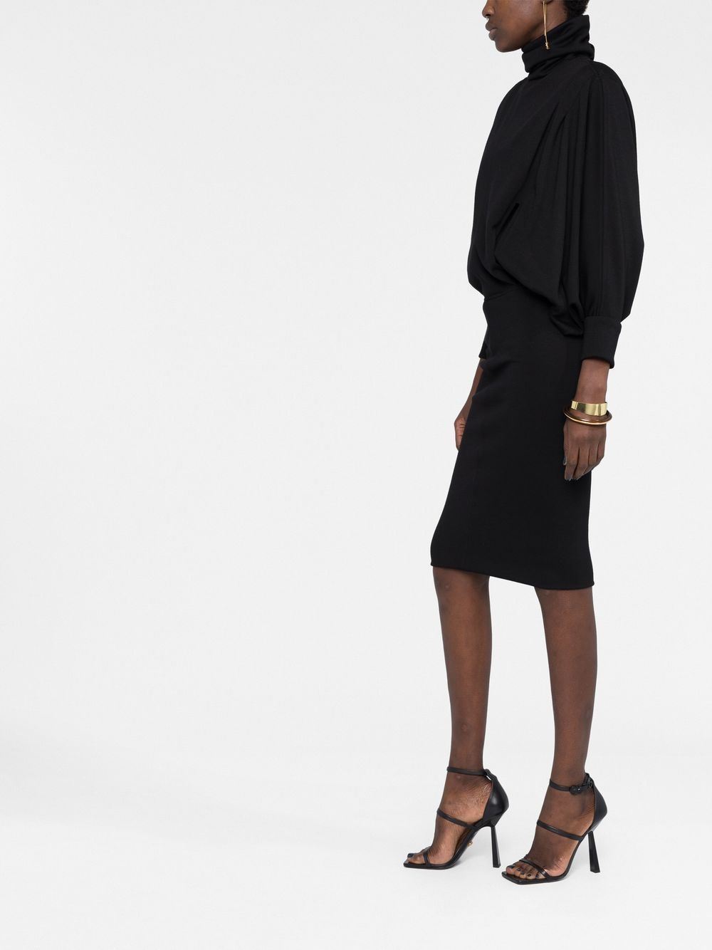 black wool/silk roll neck batwing sleeves long sleeves thigh-length