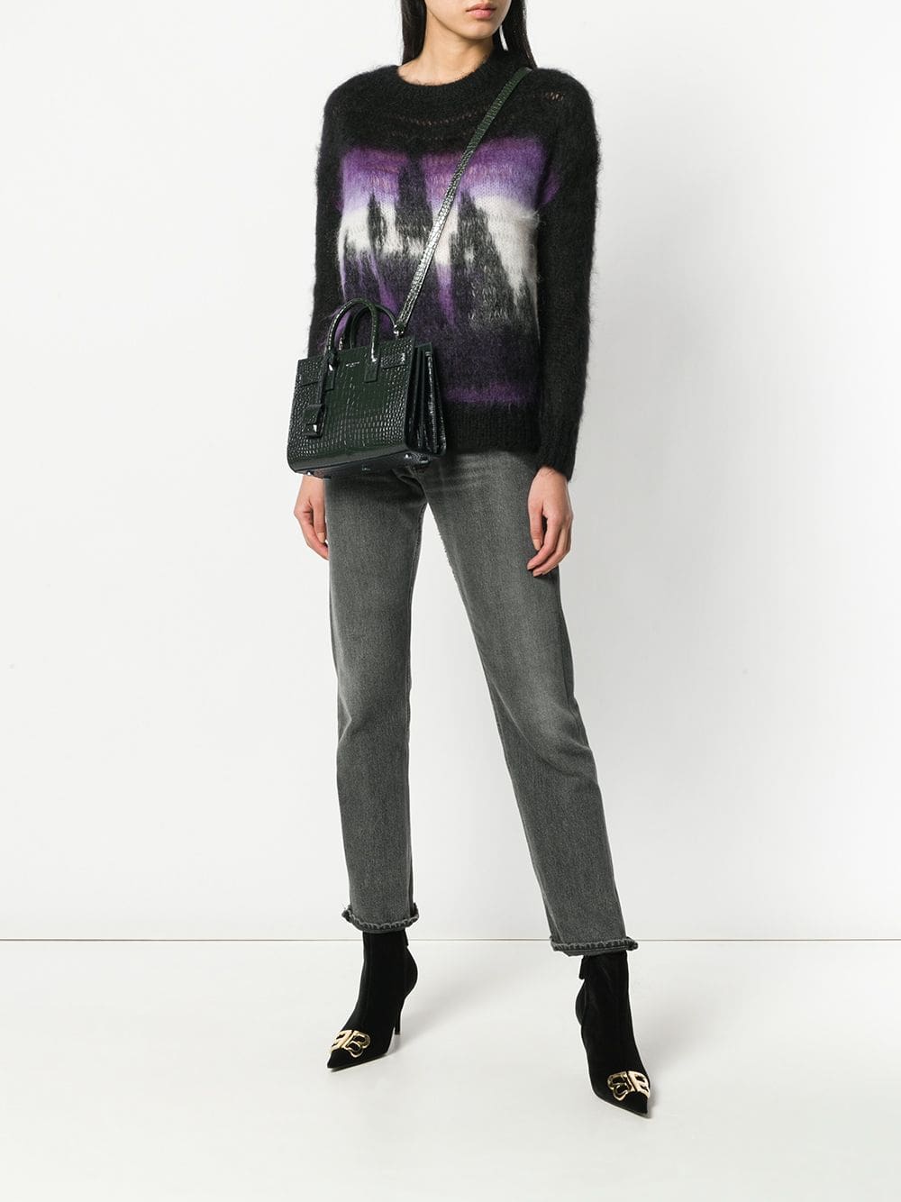 Established in 1961 by Yves Saint Laurent, French fashion house Saint Laurent is coveted for its quintessential Parisian aesthetic. Showcasing adept craftsmanship alongside luxury fabrics and expert design; the beloved label remains a cult classic with every season. This green calf leather Sac De Jour crossbody bag from Saint Laurent features top handles, a front centre logo stamp, a hanging leather tag, an adjustable shoulder strap and an embossed crocodile effect.