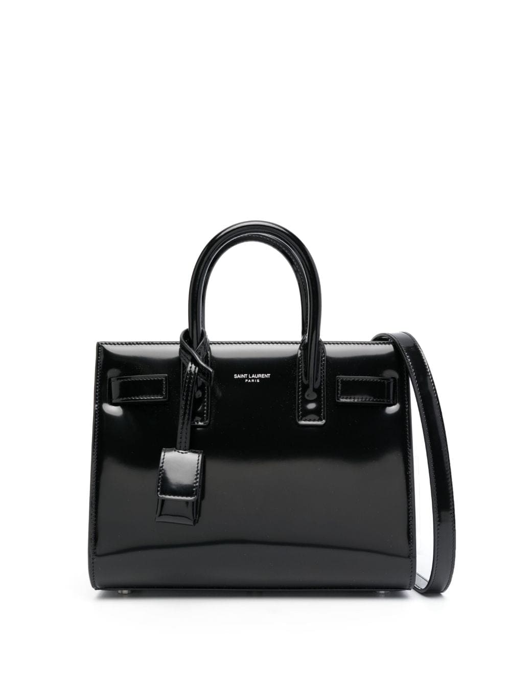 Crafted from calf leather, Saint Laurent's Sac De Jour embodies the brand's polished aesthetic with its sleek lines and glossy patent finish. A silver-tone logo stamp adorns the front of its structured silhouette for an elegant touch of branding.