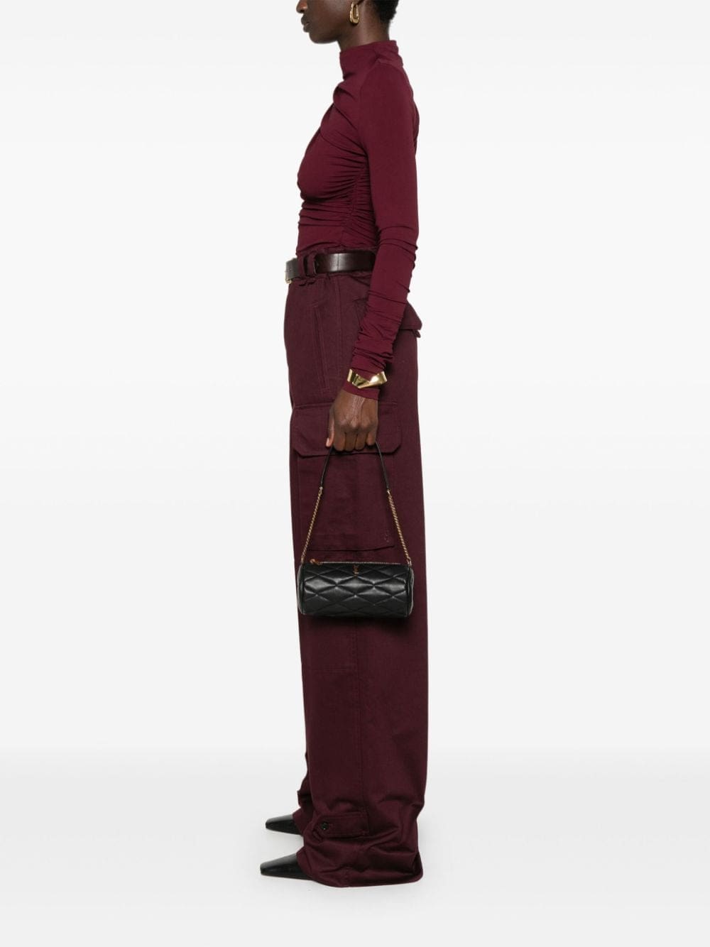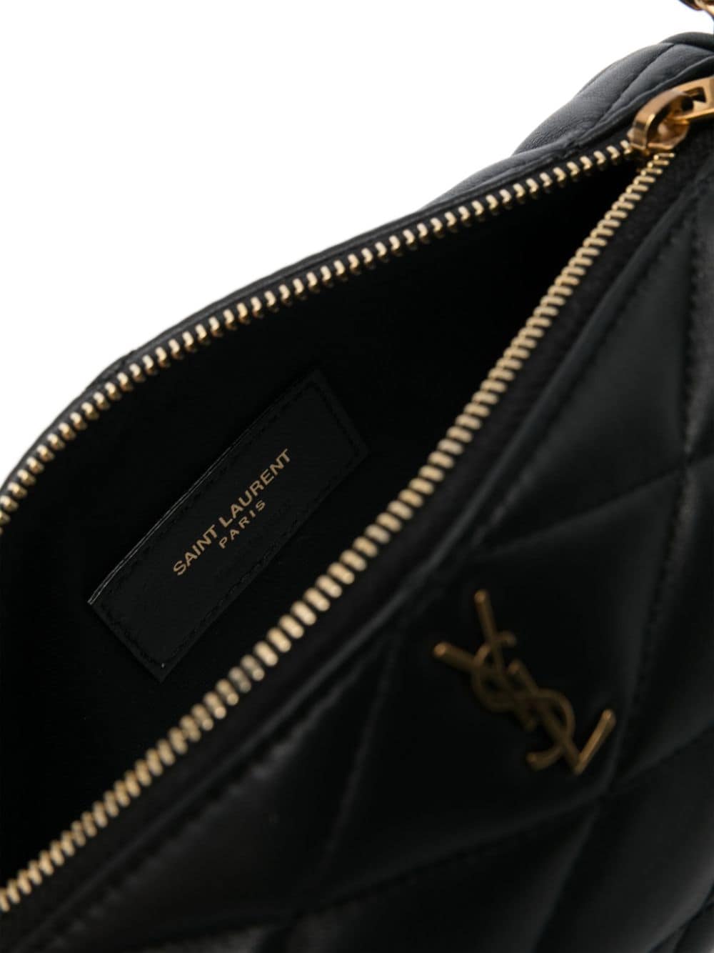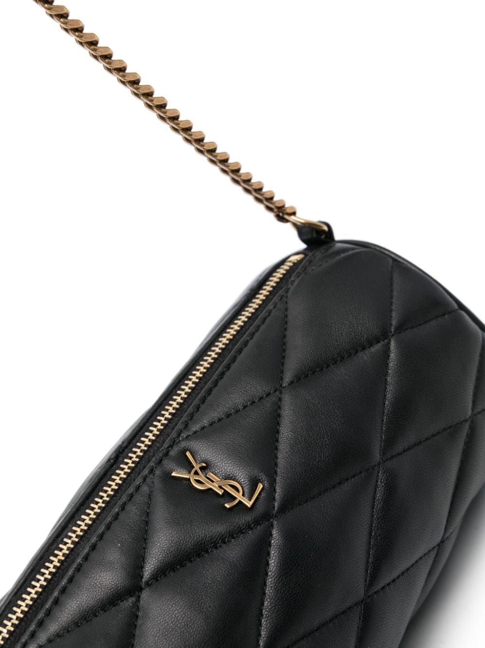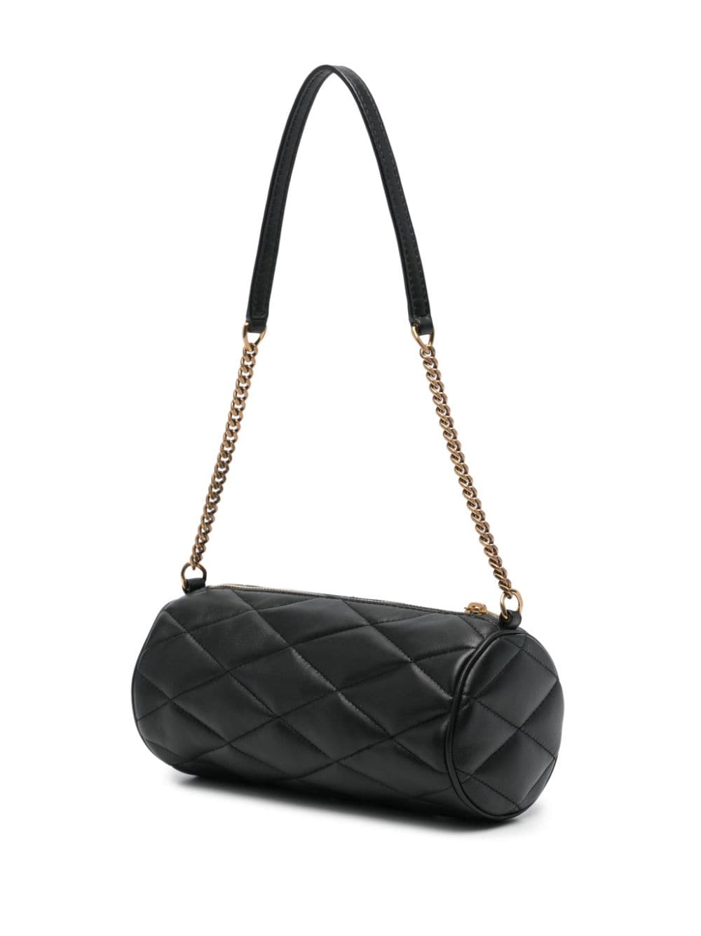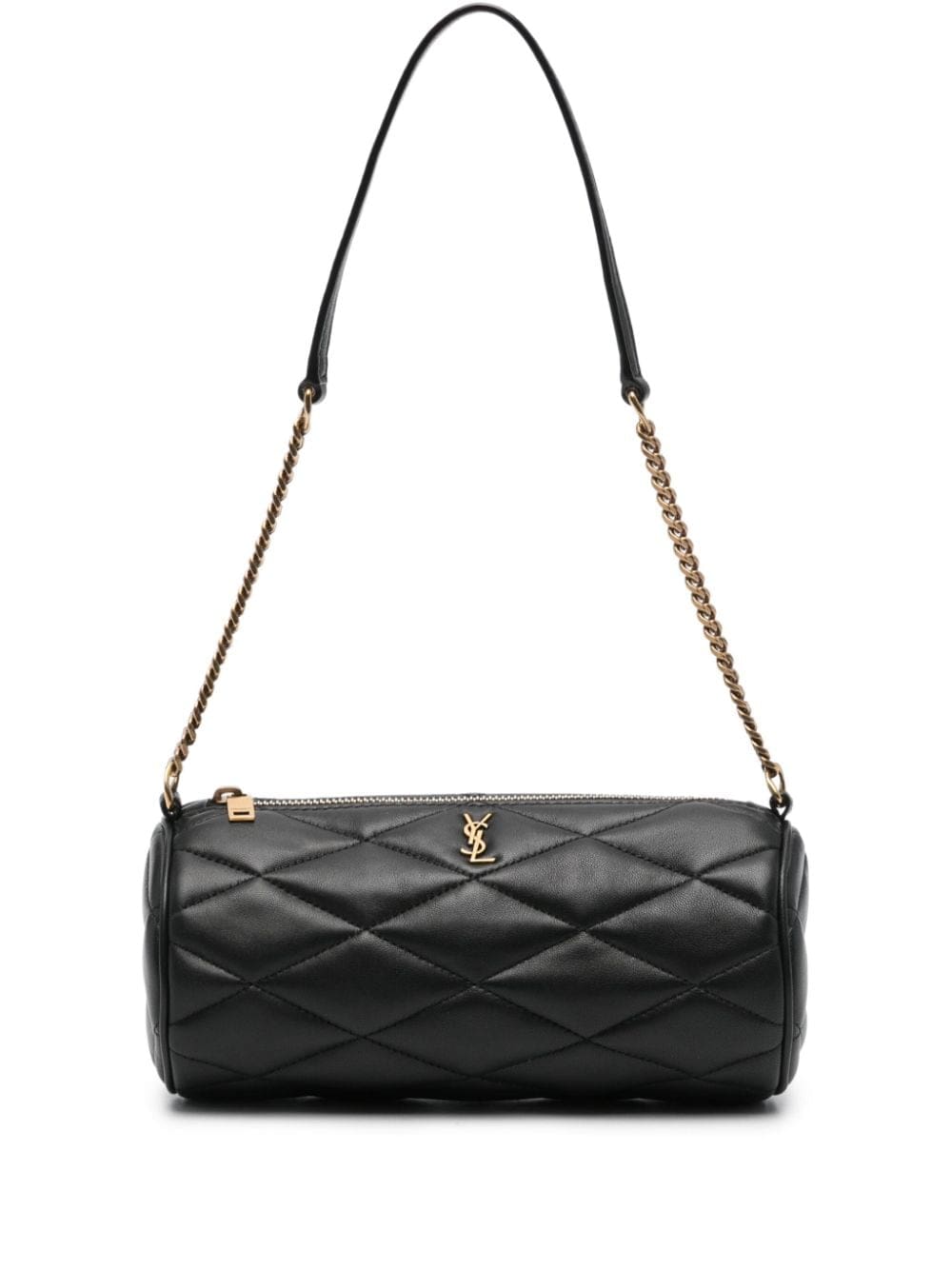 SAINT LAURENT's 'YSL' logo plaque is brought back season after season, with distinct colours and finishes. In this mini tube-shaped bag, crafted from leather, the signature appears on the front in a gold-tone - giving contrast to its full black padded design.