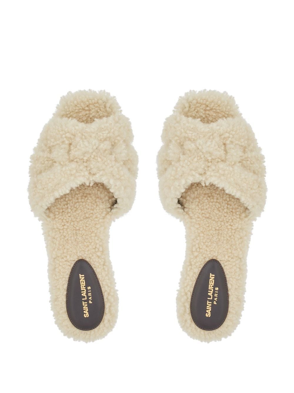 Crafted in a simple, open-toe silhouette, these slides from Saint Laurent focus on texture in their plush, soft shearling construction.
