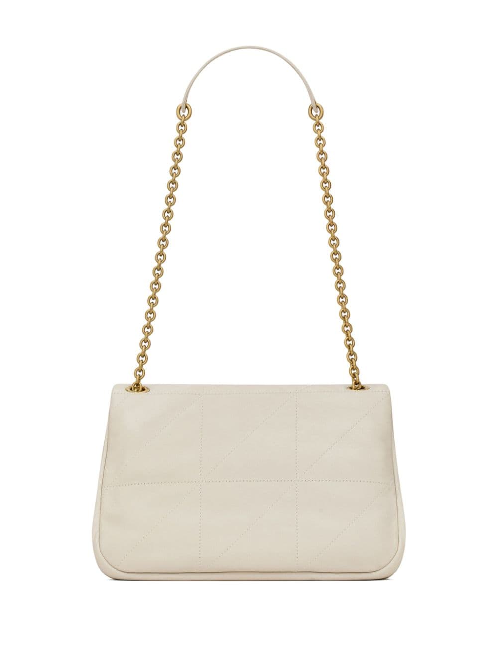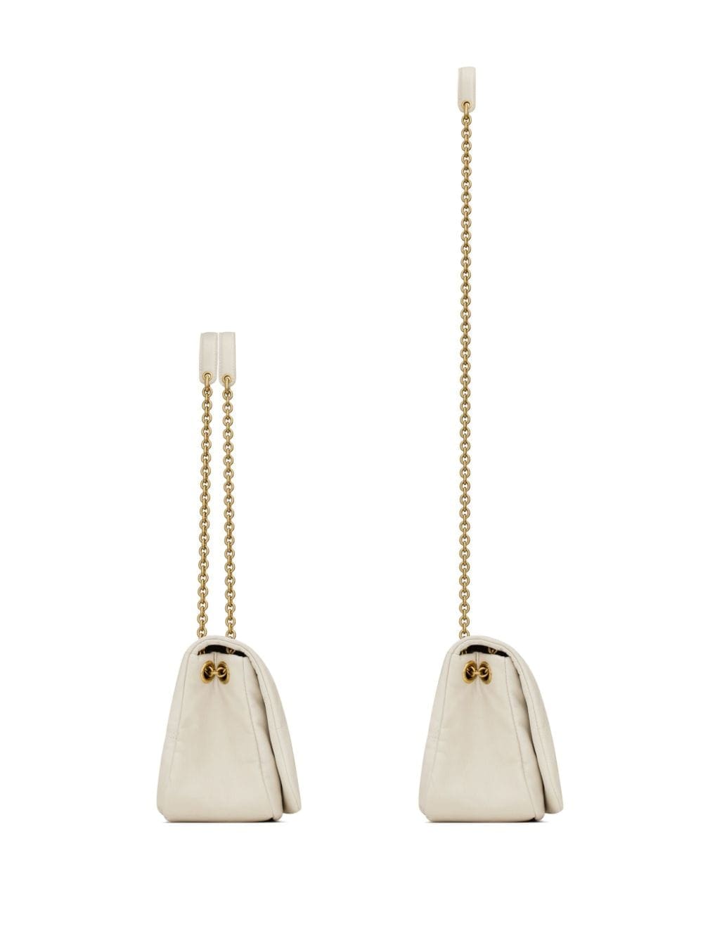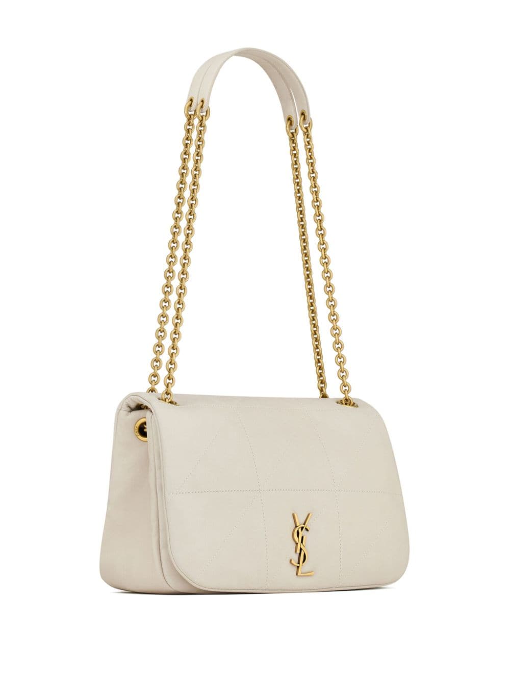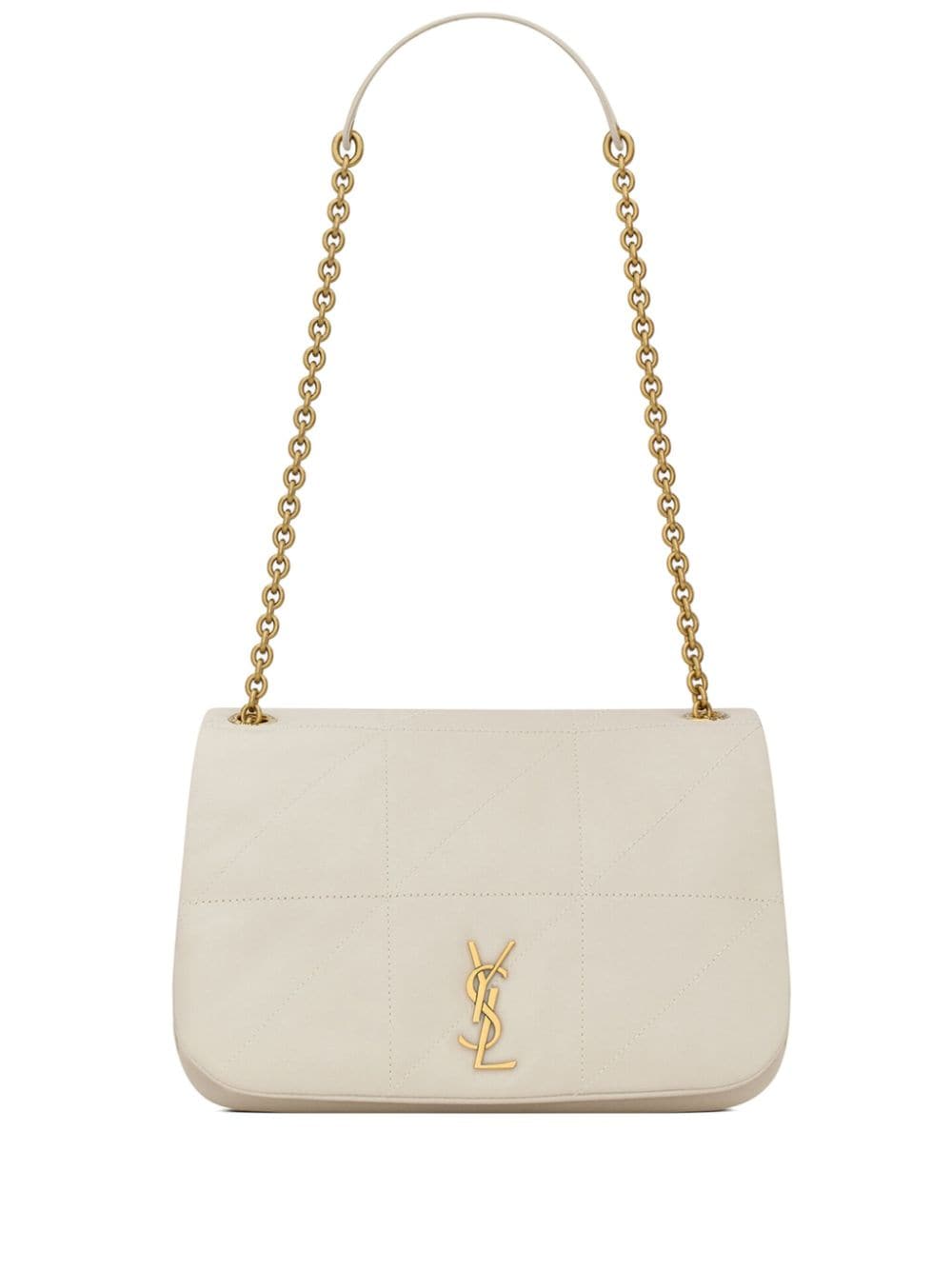 Saint Laurent’s iconic YSL plaque is an instantly recognisable symbol, representing the brand’s rich heritage and long-standing Parisian roots. It takes centre stage on this white Jamie 4.3 shoulder bag, imagined in polished gold-tone hardware.