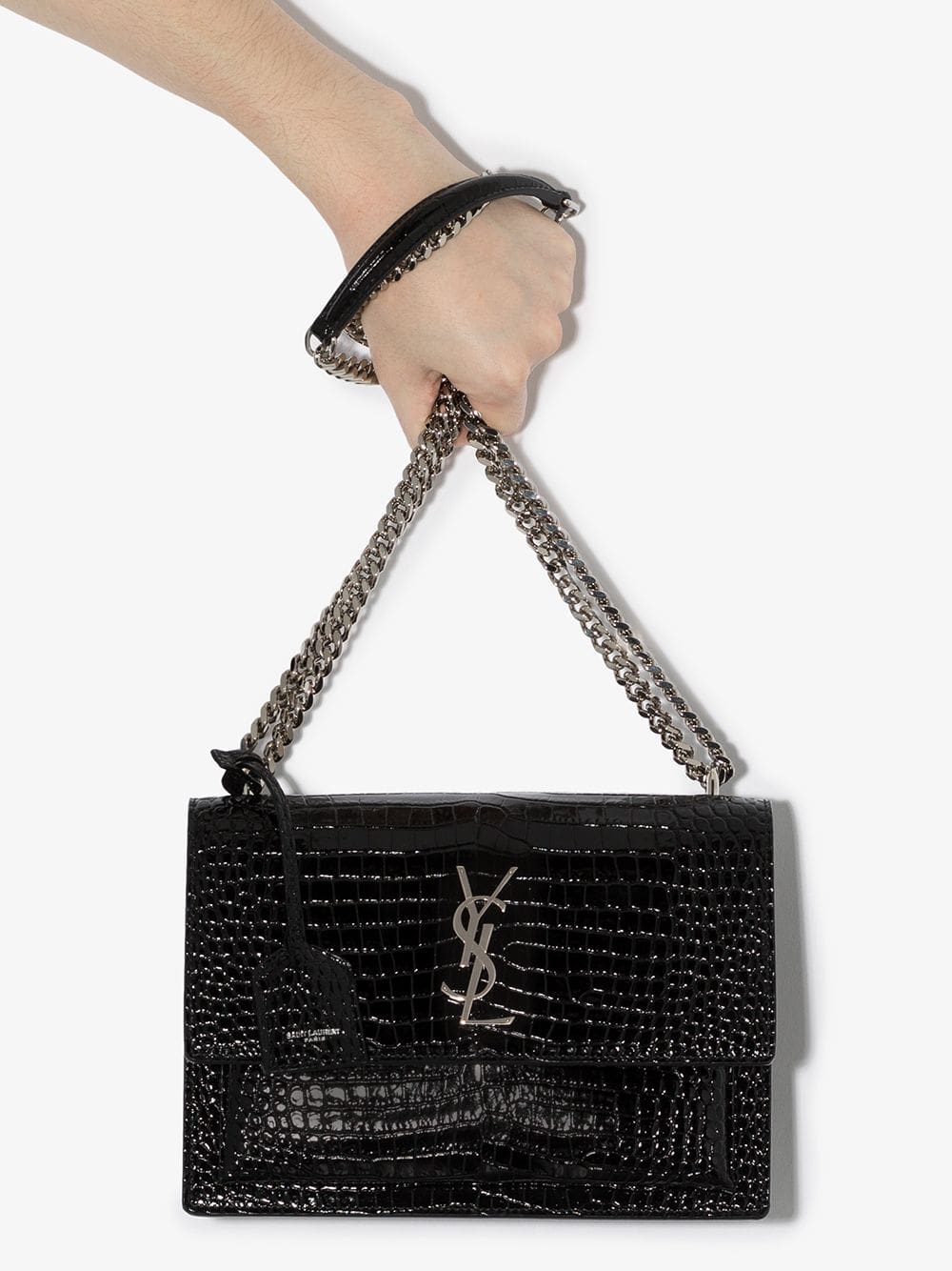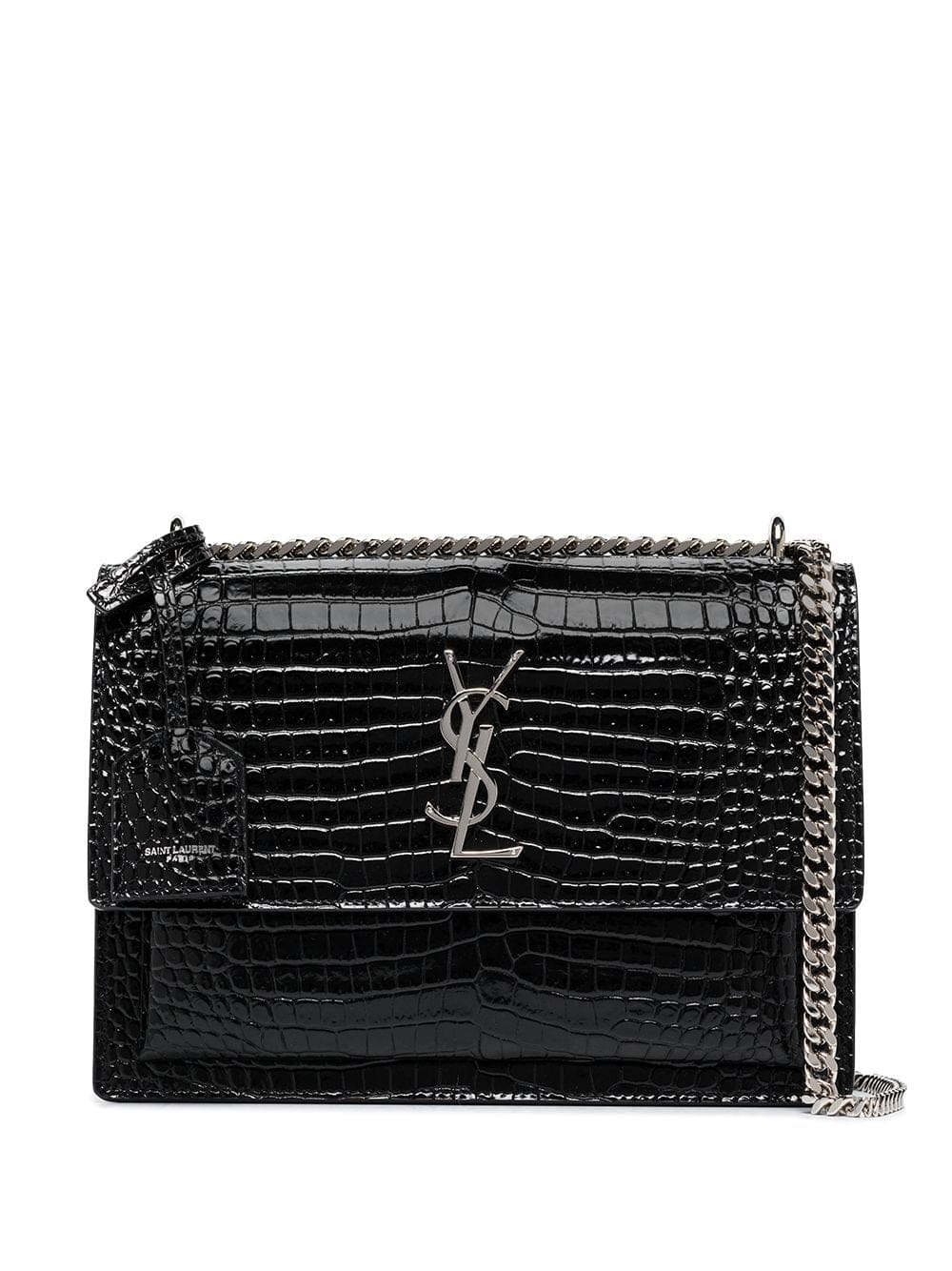 Saint Laurent's shoulder bag is a masterclass in timeless elegance. Crafted from croc-effect leather, it's punctuated with the brand's iconic YSL plaque. Can't beat a classic.