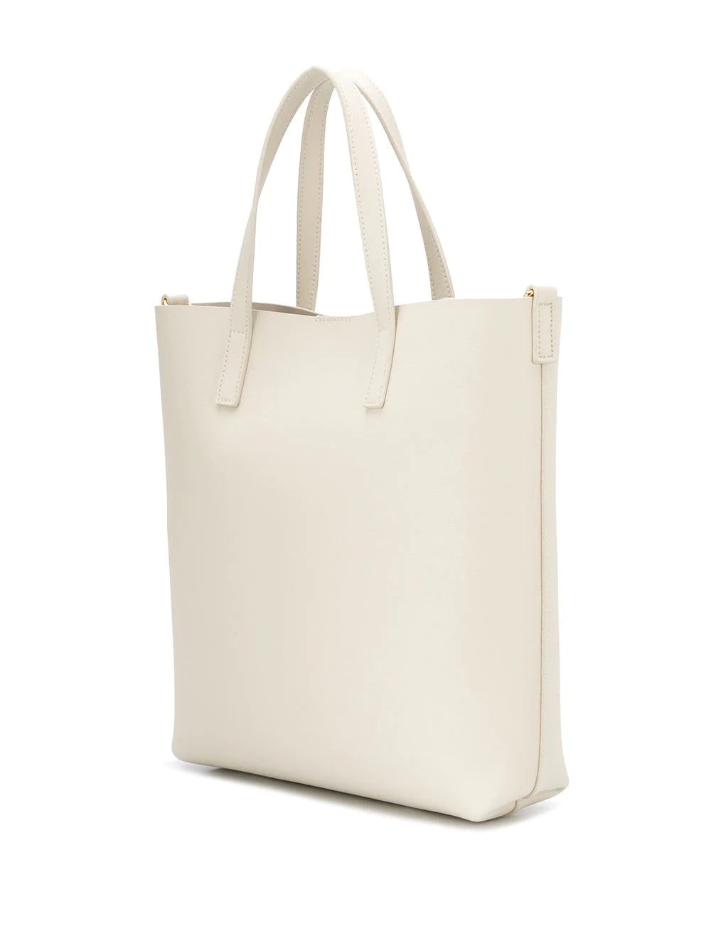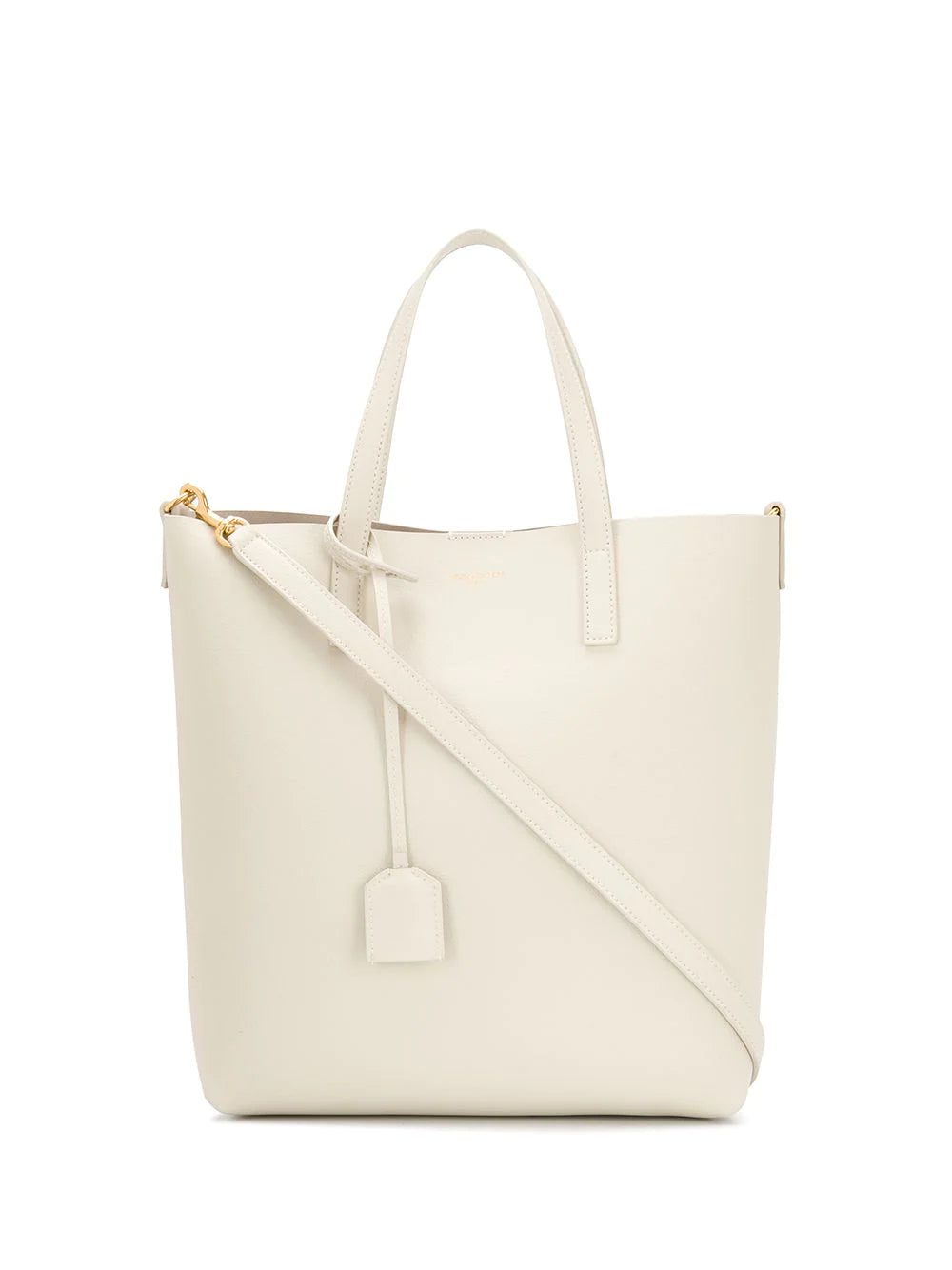 Your everyday bag doesn't have to be black. Consider this leather you Shopping tote bag from Saint Laurent, in an ivory white to brighten up your look. Add the detachable strap and wear it cross body to go hands-free! Featuring a front embossed logo stamp, a magnetic closure, a cross body strap, gold-tone hardware and ysl charm.