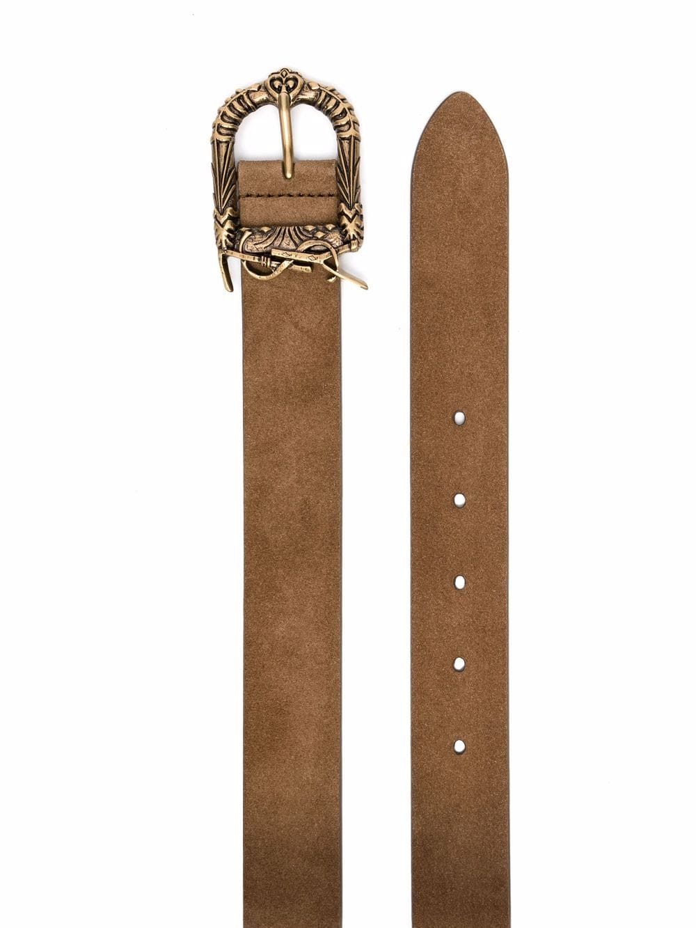 Yves Saint Laurent's initials are a stand out element in any design. Crafted from leather, this belt features a gold tone buckle decorated with Celtic motifs, interlaced with the iconic YSL logo plaque.