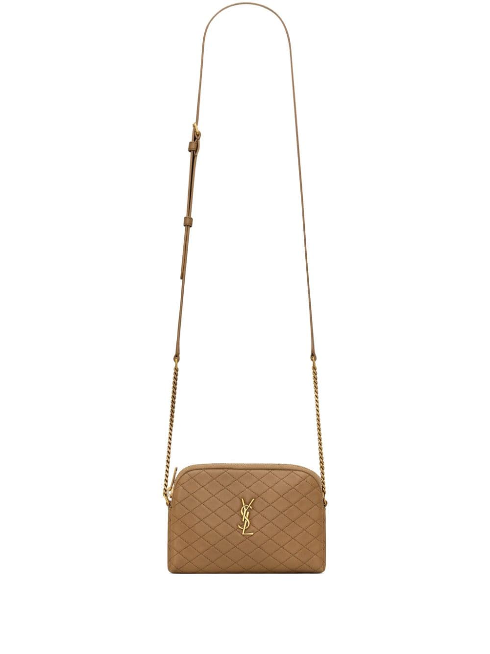 - adjustable leather and chain-link shoulder strap