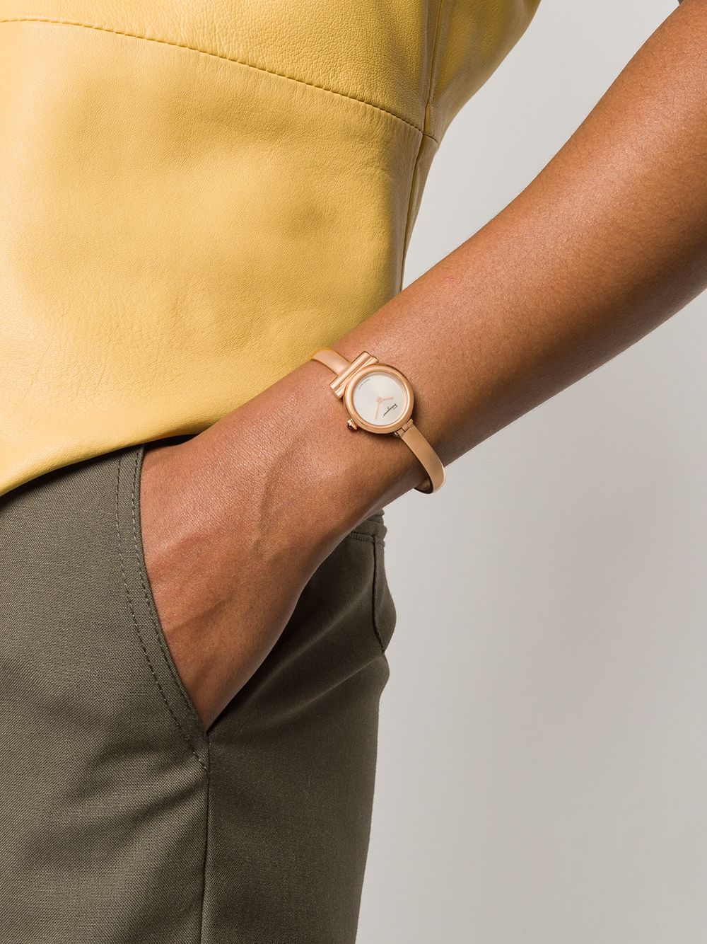 What time is it? It's time to update your wrist with this gold-tone metal Gancini bangle watch from Salvatore Ferragamo Watches. With an elegant bracelet silhouette, it's as pretty as it is practical.