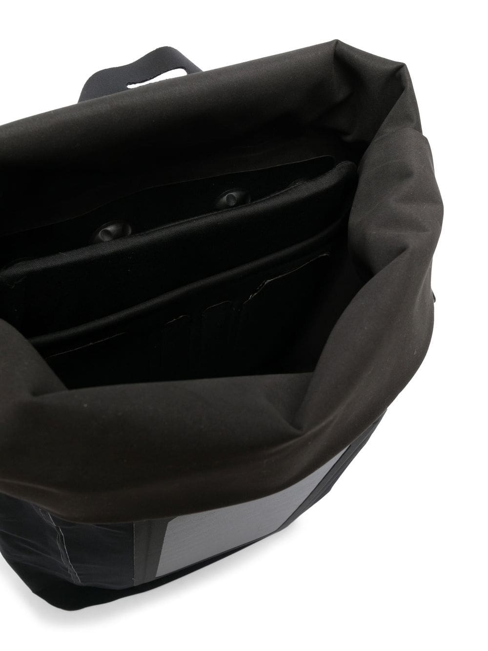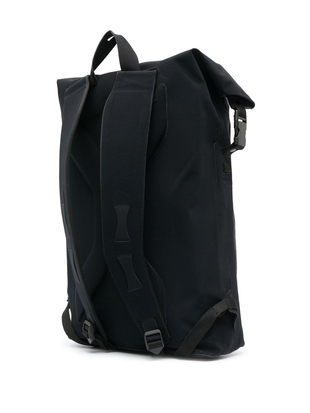 black panelled design logo print to the front two padded adjustable shoulder straps single top handle top zip fastening side buckle fastening main compartment