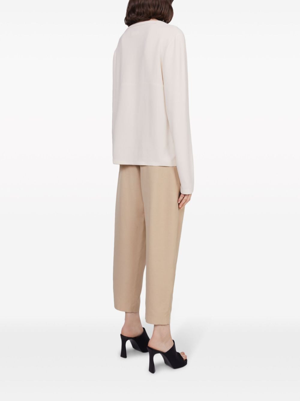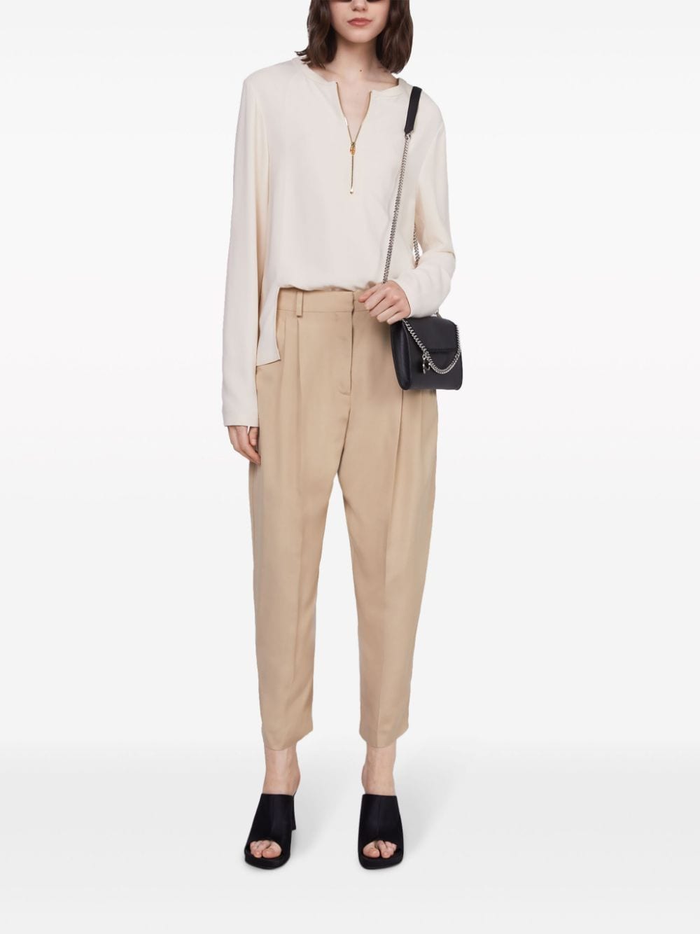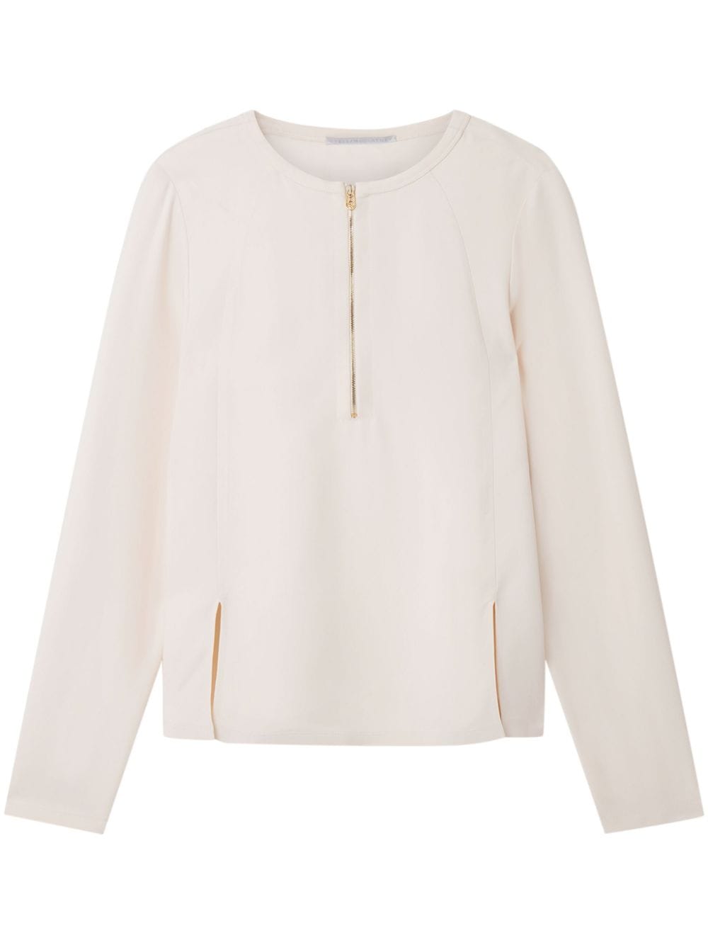 Stella McCartney has developed a signature brand of sports-inspired silhouettes remixed with expert tailoring and a minimalistic femininity. A versatile wardrobe staple, this beige Arlesa blouse is from the label's SS24 collection. Lightweight and loose-fitting, the piece features a round neckline, a partial silver-tone front zip fastening, long sleeves, side slits and a step hem.