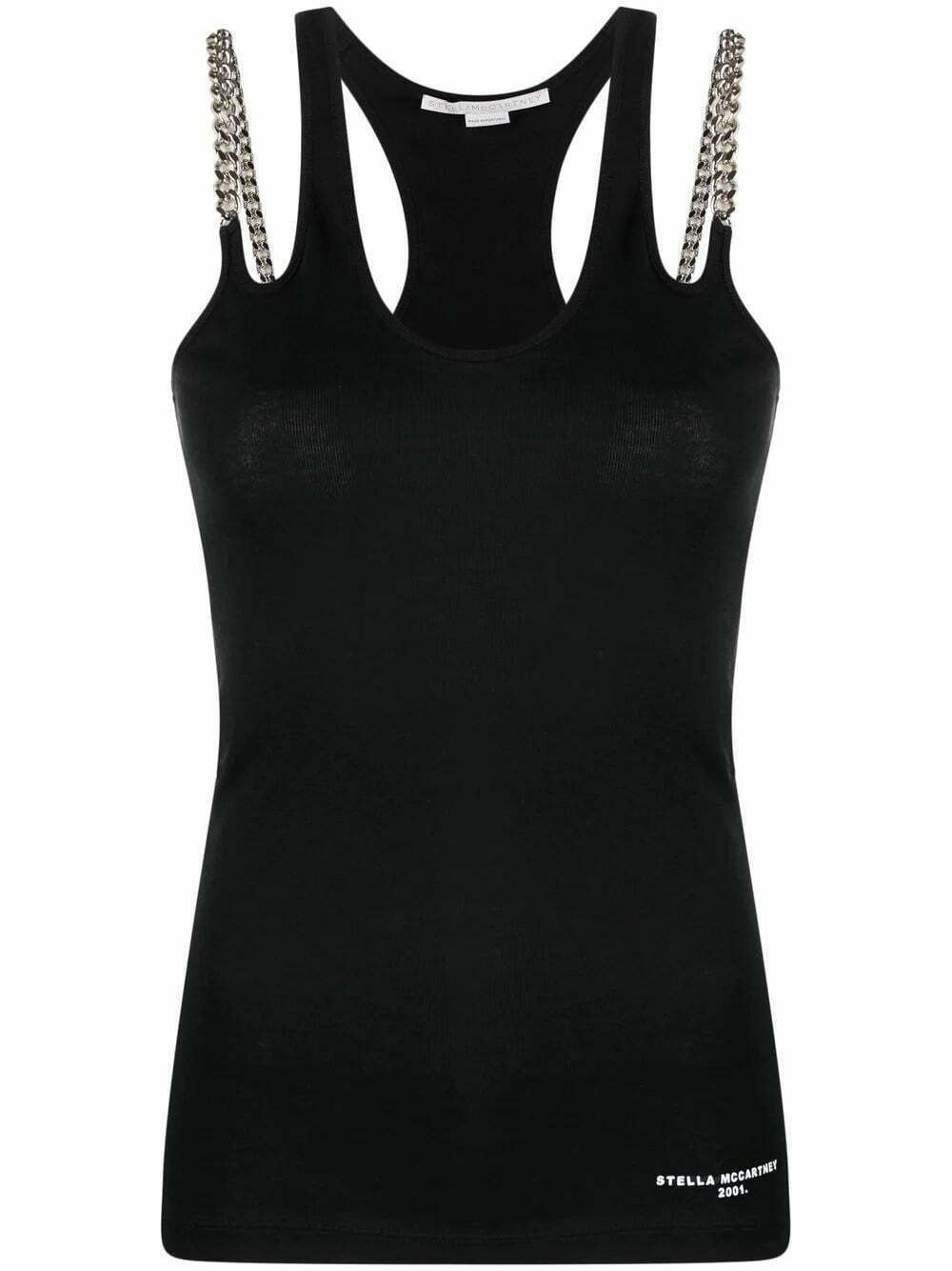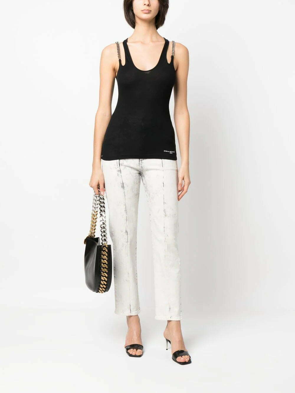 Stella McCartney finds new ways of incorporating its signature Falabella chain into its ready-to-wear pieces. The detail adds a unique and recognisable design to this basic racerback tank top that elevates the wardrobe staple.