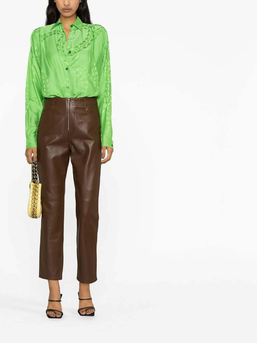chain-link print long-sleeve shirt from STELLA MCCARTNEY featuring bright green, chain-link print, classic collar, front button fastening, buttoned cuffs and straight hem. Conscious: We've partnered with Good On You – an ethical agency that rates how sustainably brands perform. This product comes from a brand that performs well in relation to their impact on animals..
