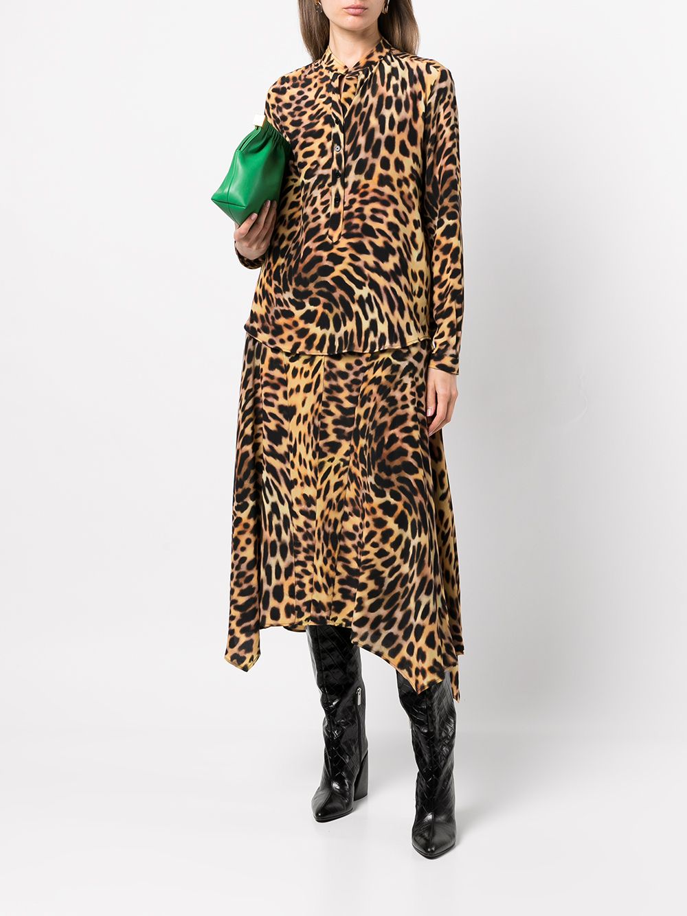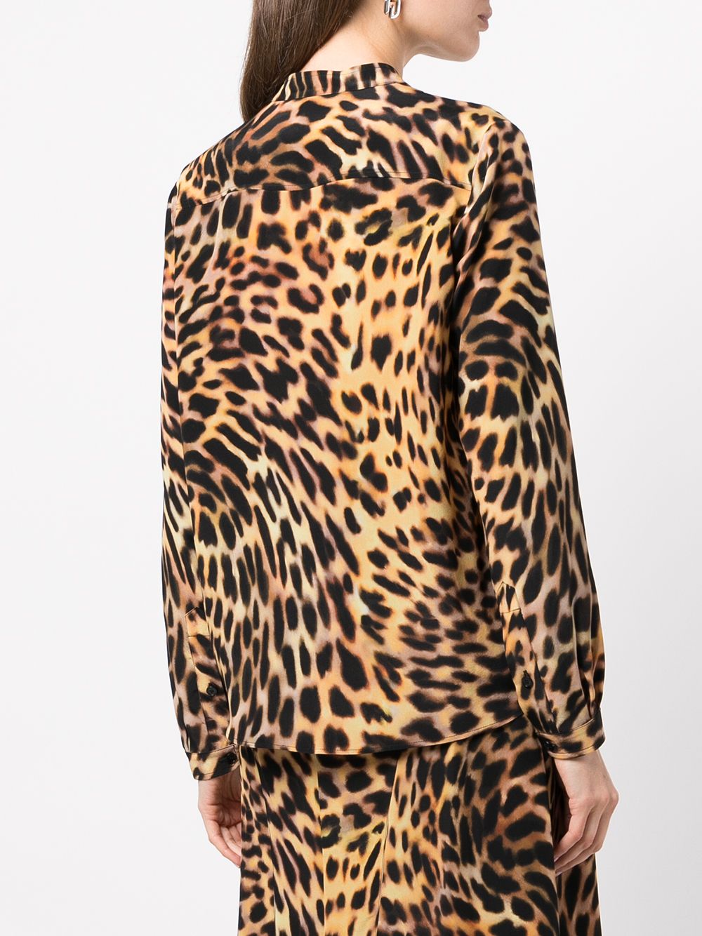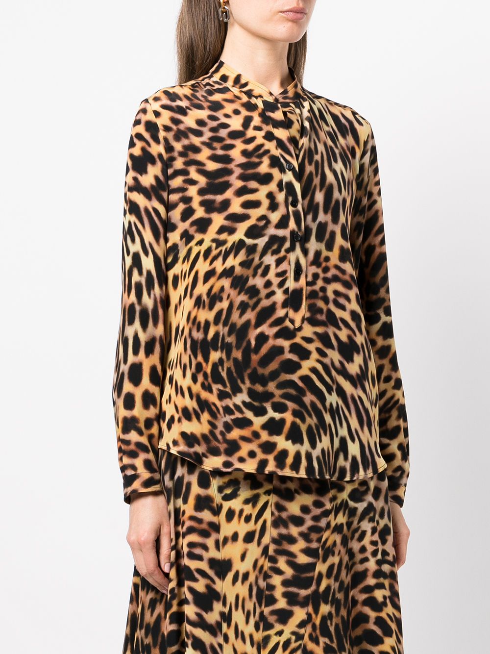 With a psychedelic effect, this shirt from Stella McCartney is designed with a warped brown cheetah print. Made from pure silk, its structure shows simple lines and a mock collar.
