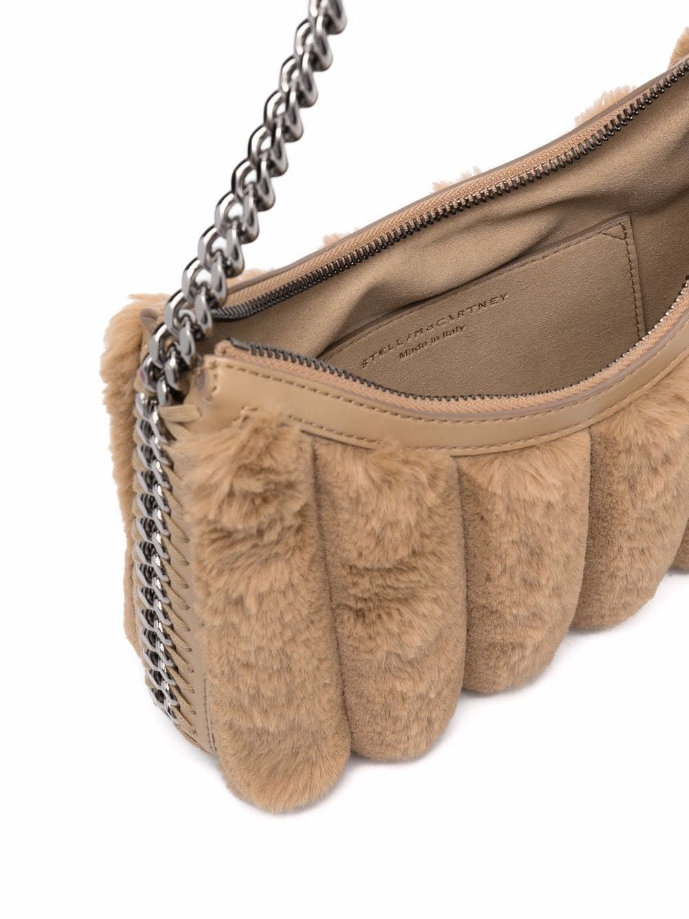 Stella McCartney proves that ethical fashion is the future and this SS22 collection is no exception to that. Made from beige faux fur, this small shoulder bag has been detailed with the iconic chain-link trim and shoulder strap.