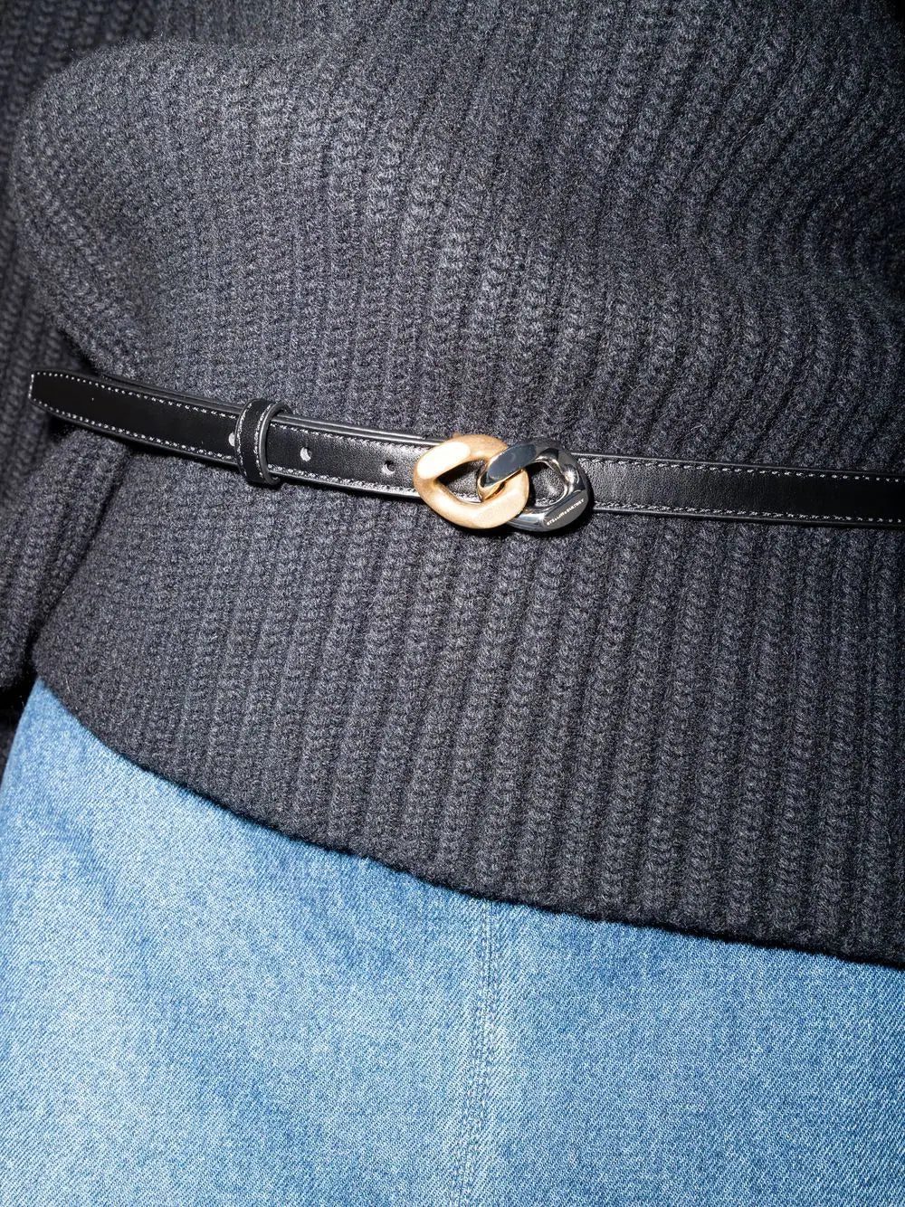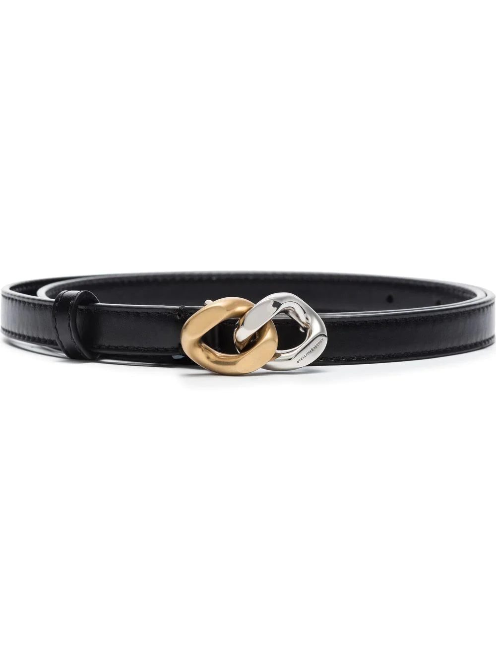 This Stella McCartney belt is designed with two links of the signature diamond-cut curb chain made iconic by the brand's Falabella style. The accessory is detailed with both silver and gold-tone hardware in a polished finish.