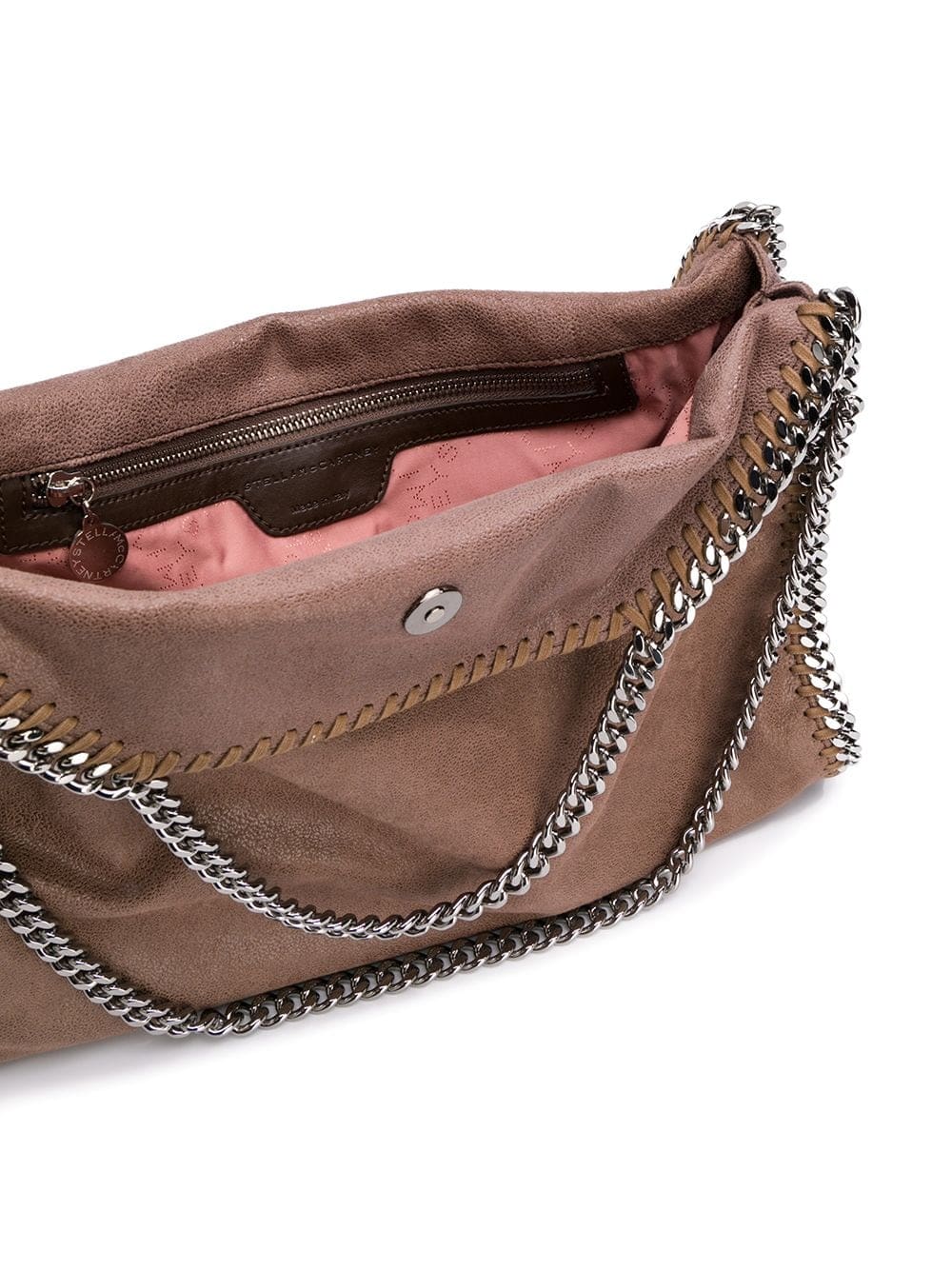 As always, Stella McCartney fashions contemporary offerings for the modern woman without eschewing the ethical ambitions that the brand was built on. Crafted in Italy from artificial leather, this Falabella tote from Stella McCartney features top handles, a silver-tone chain trim, a silver-tone chain shoulder strap, a top snap closure, an internal patch pocket, an internal logo stamp and a logo printed lining.