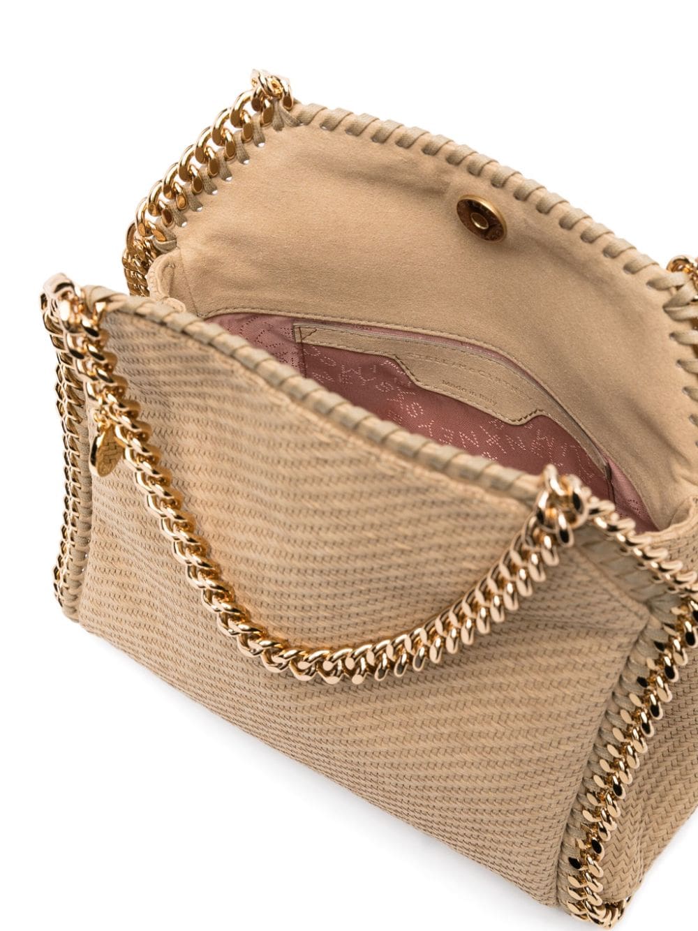 Typified by its signature whipstitch chain trim, Stella McCartney's Falabella tote bag is delivered here in an interwoven design.
