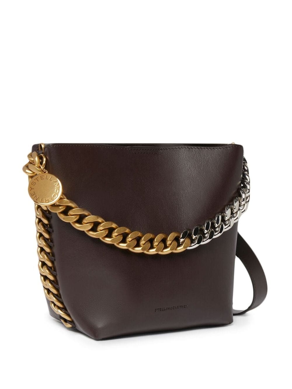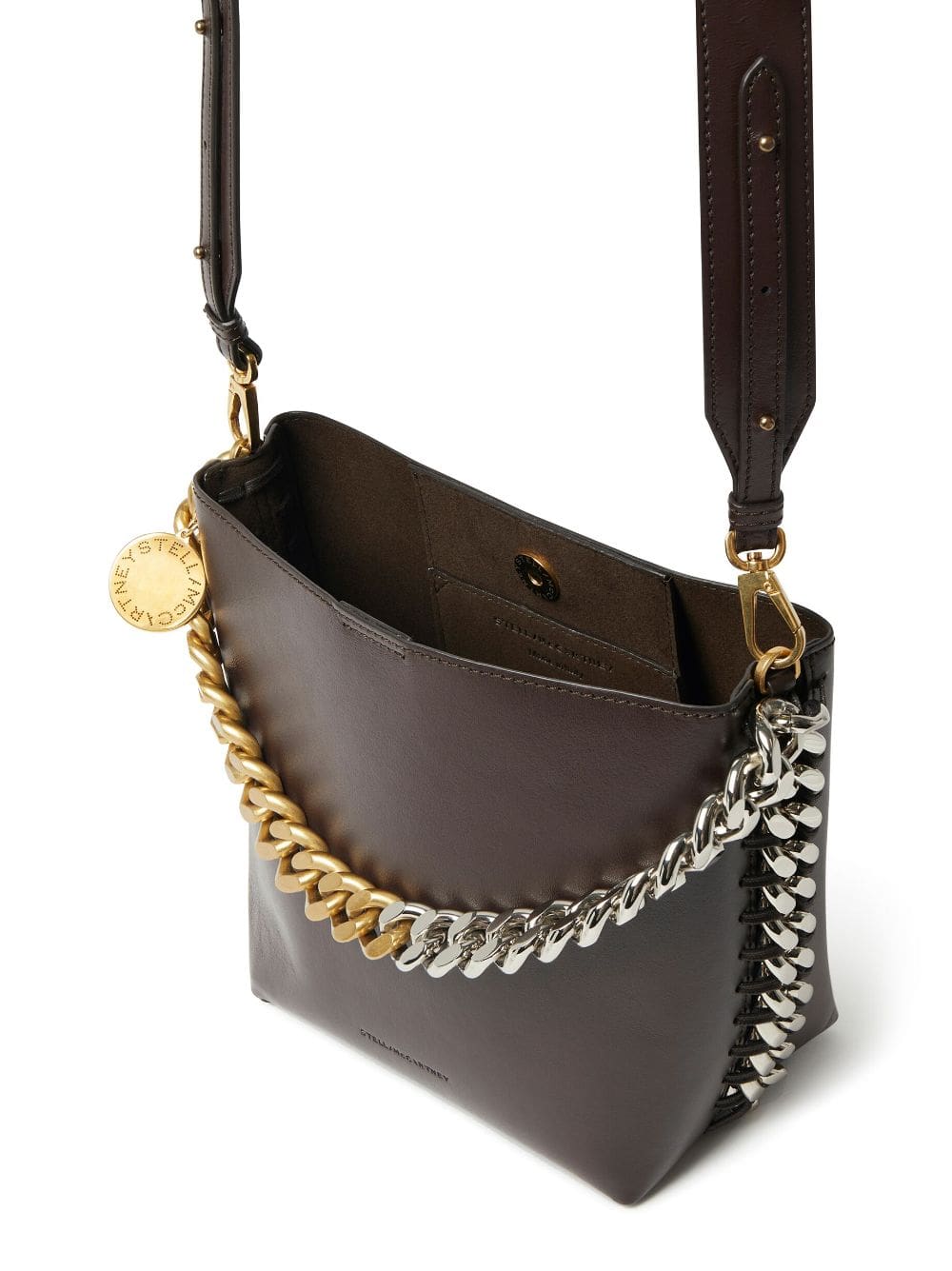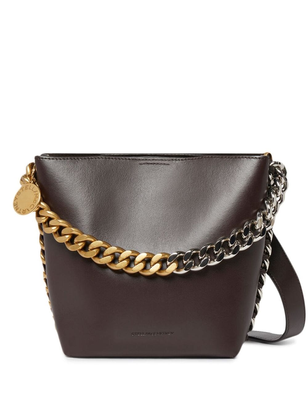 Stella McCartney updates its signature diamond-cut chain detailing each season, refreshing the classic trim for new silhouettes. Crafted from the brand's faux leather, this Frayme shoulder bag is embellished with the chunky gold and silver-tone chain to each side, interwoven with the trademark whipstitch detailing.
