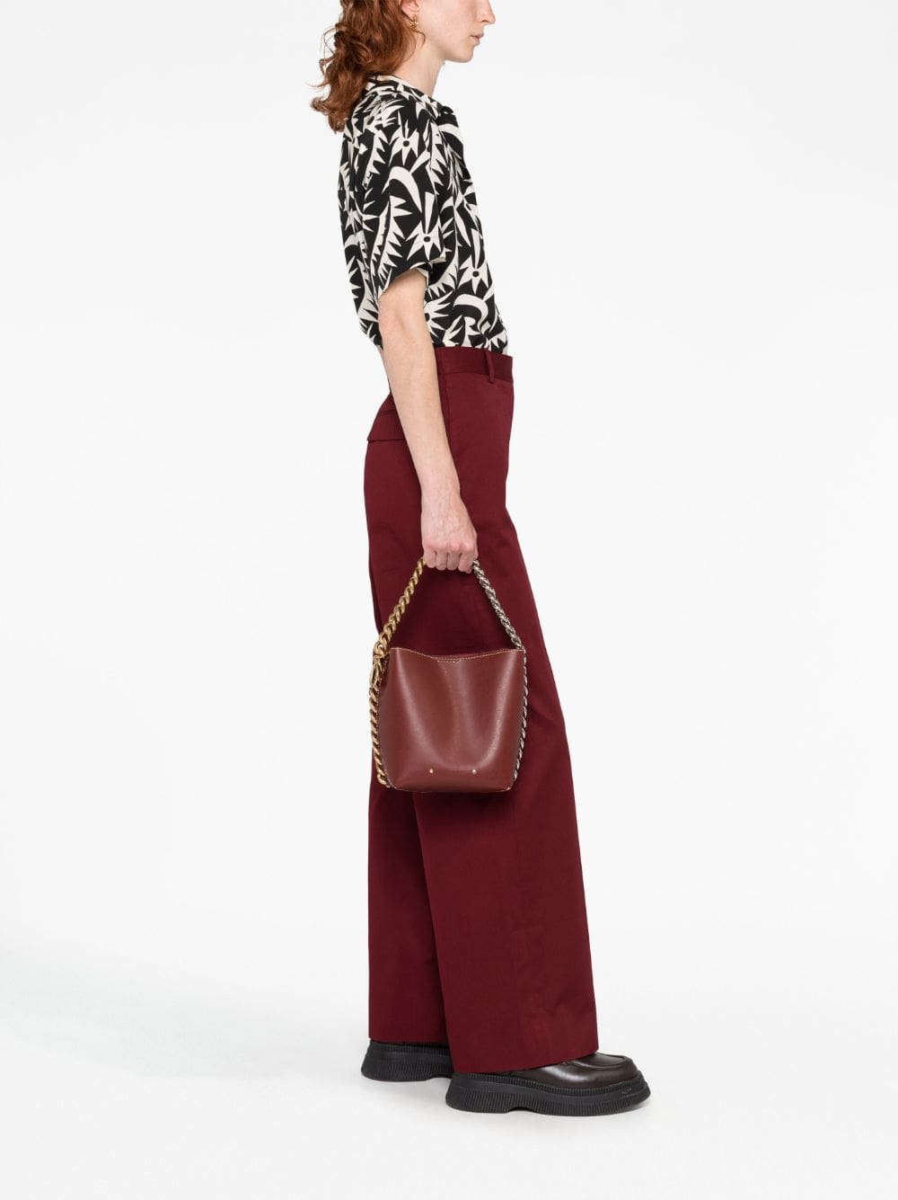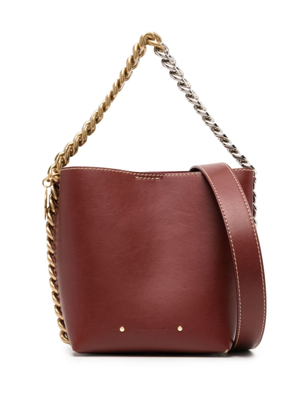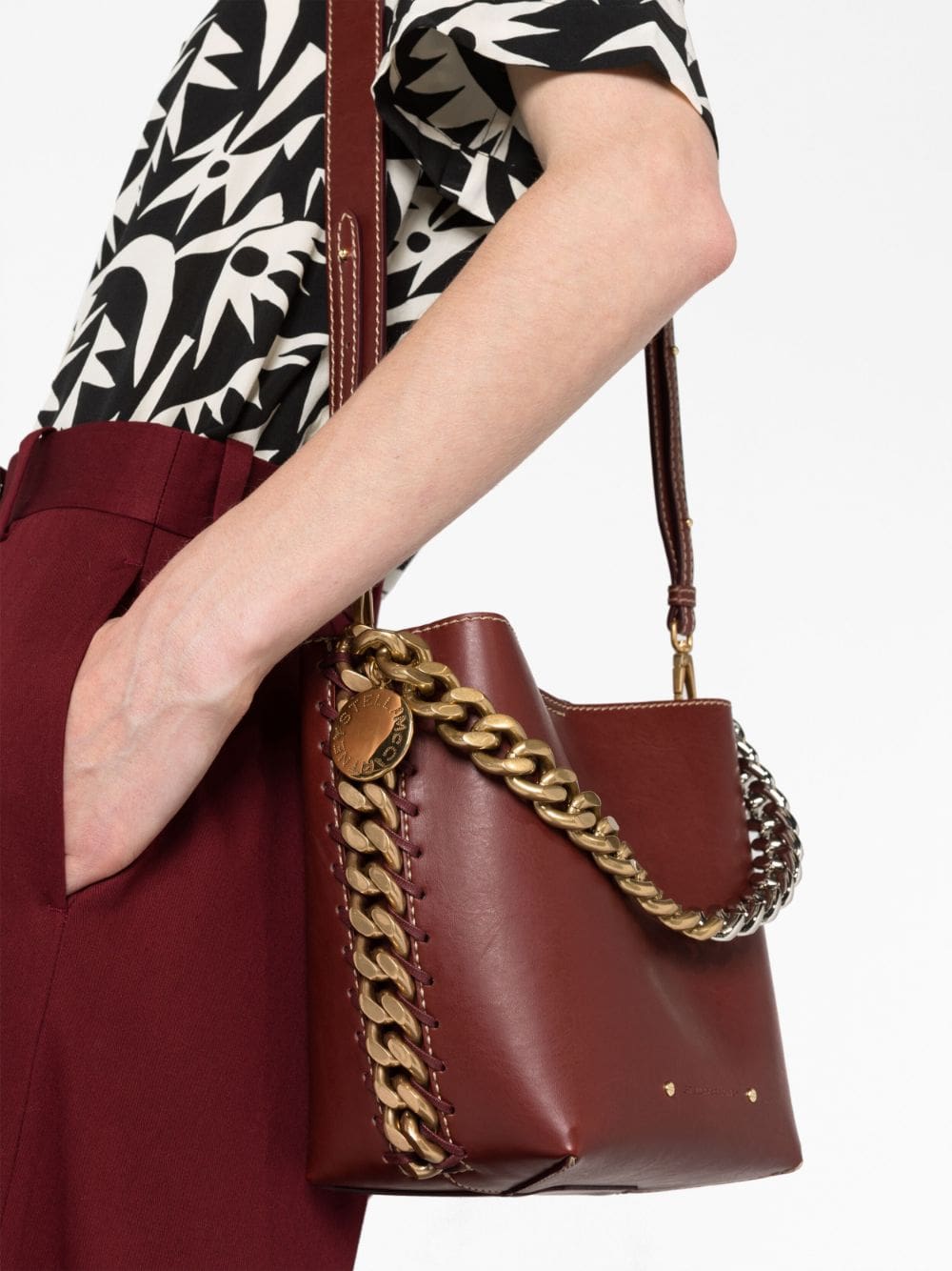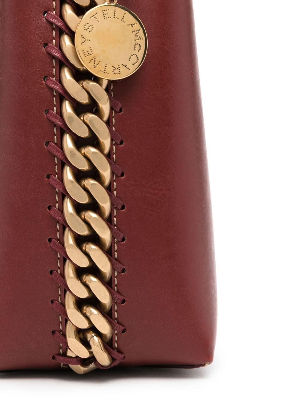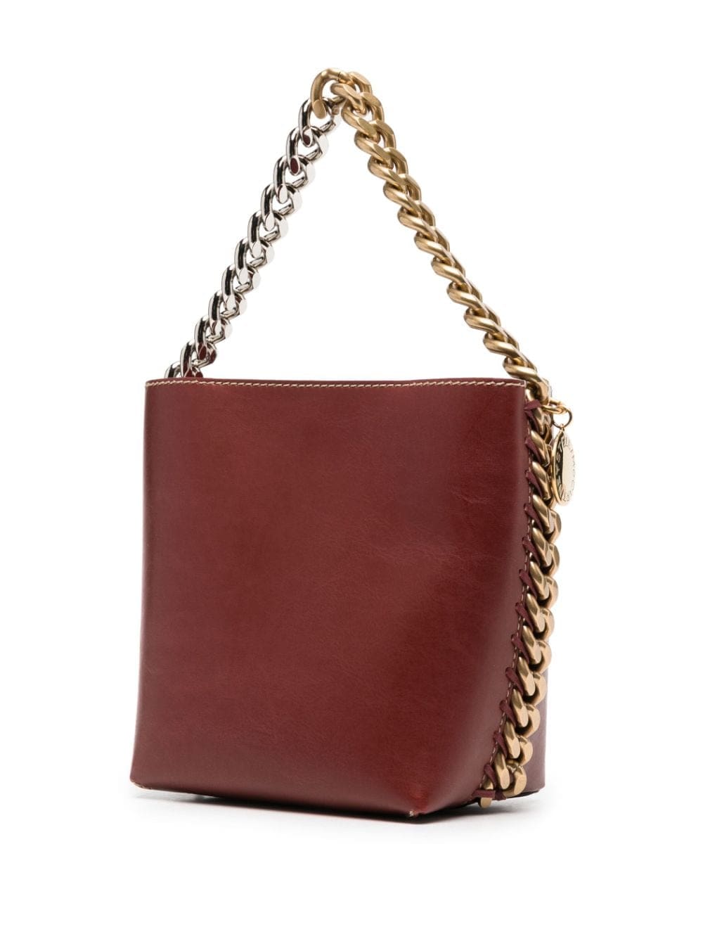 Stella McCartney reinvigorates its signature house codes with the Frayme tote bag. Sustainably crafted from vegan leather, the design is inspired by the iconic Falabella bag, boasting a two-tone diamond-cut chain at the trim.