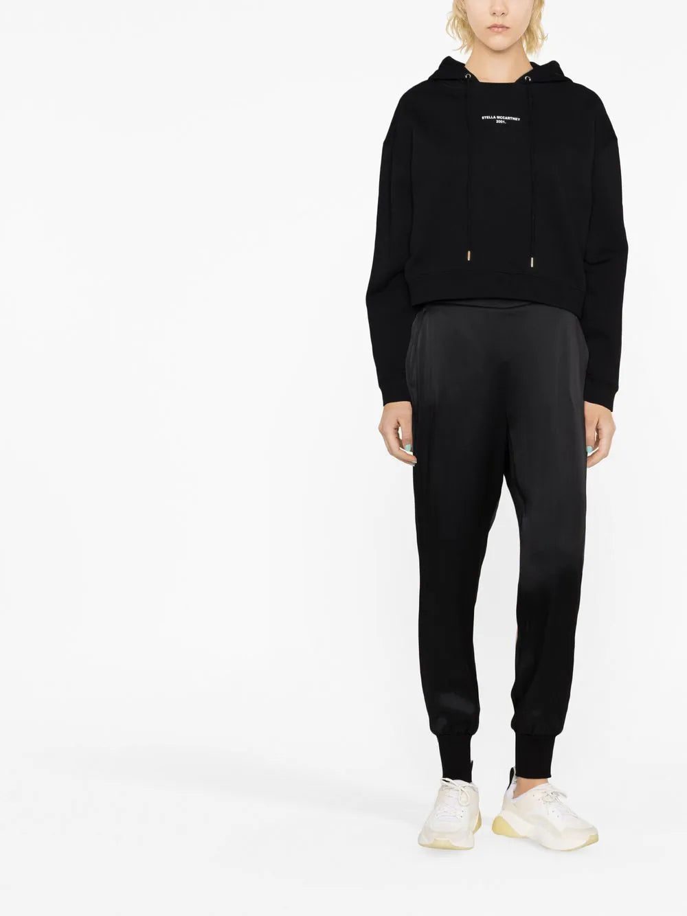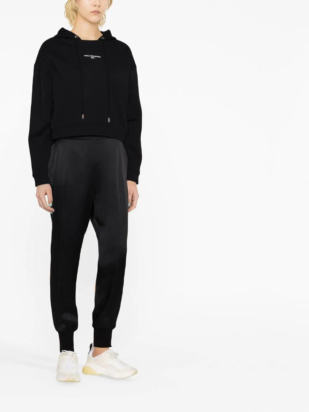 Stella McCartney channels a minimalist and sporty aesthetic with the Julia track pants. The mid-rise tapered silhouette is presented in a sleek black hue that makes the style an endlessly versatile wardrobe staple.