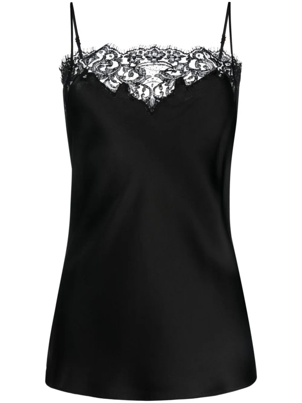 This Stella McCartney cami top speaks to the brand's refined side. Crafted from black satiny fabric, it is held by adjustable spaghetti straps and framed with brand-exclusive Guipure lace trim, creating a vespertine allure.