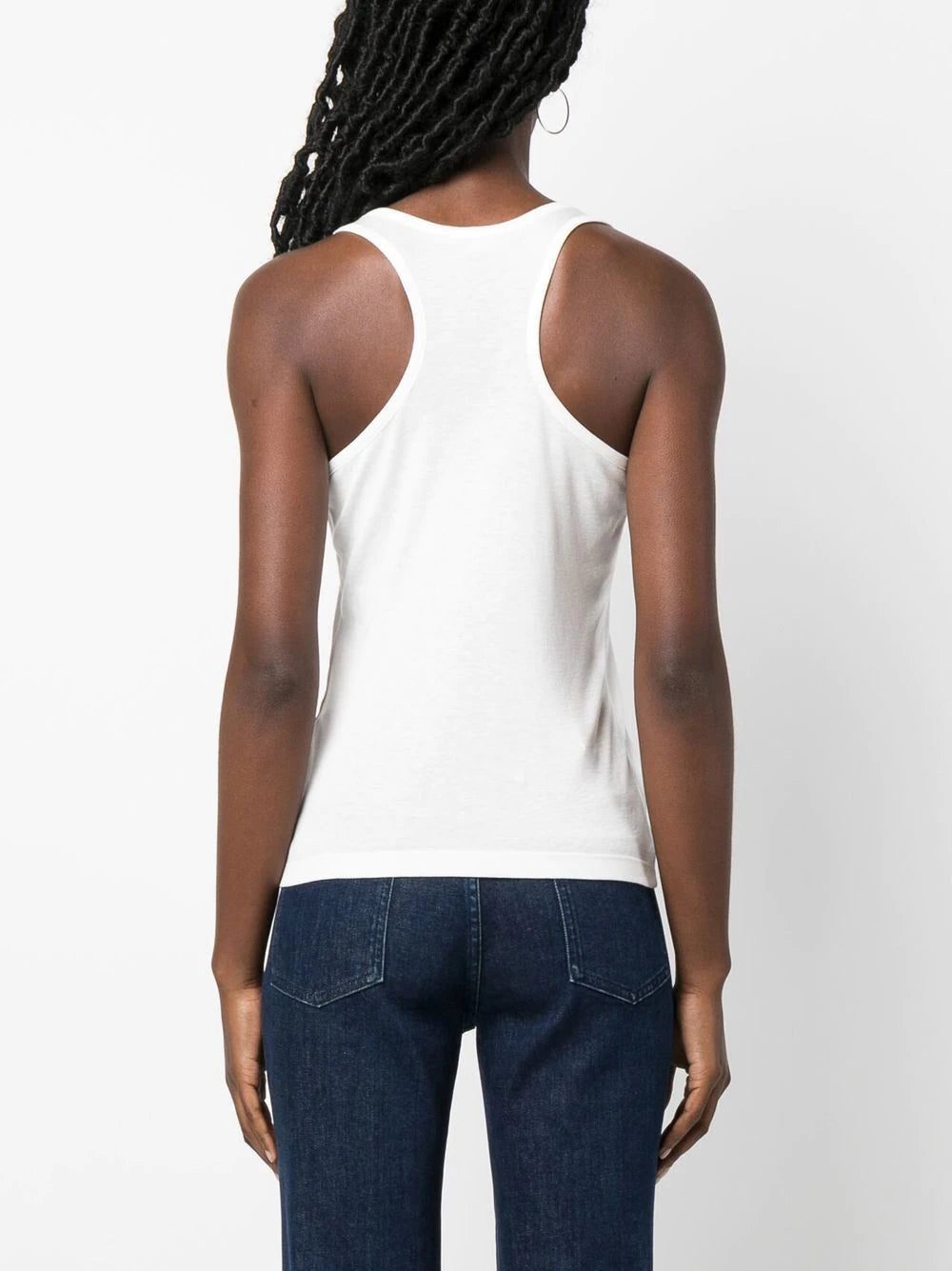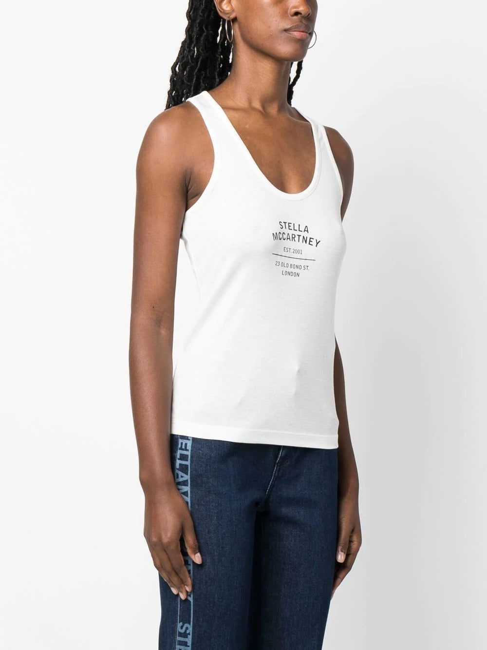 logo-print racerback top from STELLA MCCARTNEY featuring white, cotton-lyocell blend, scoop neck, racerback and logo print to the front. Conscious: This item contains at least 50% low-impact materials, which are certified or widely recognised as having a lower environmental impact..