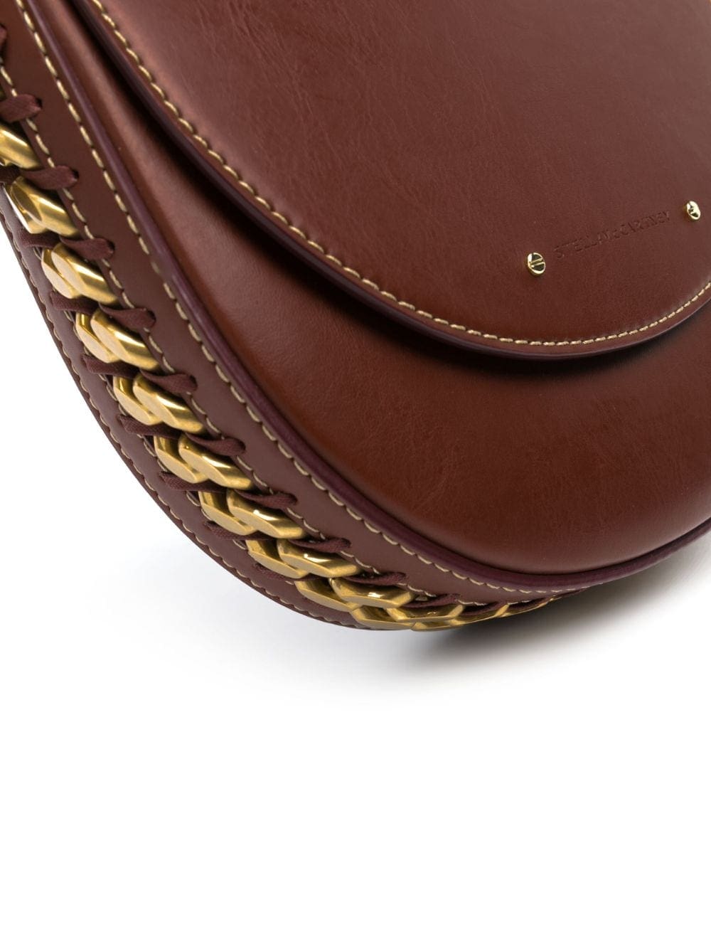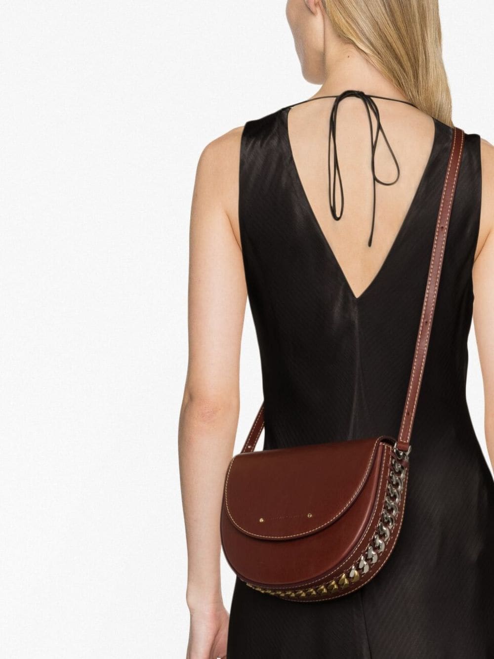 The chunky mixed-metal chain that wraps around the saddle silhouette of this Frayme bag lends it a signature Stella McCartney touch. It’s crafted in Italy from vegan leather to a medium size and washed in an earthy cherry-red hue.