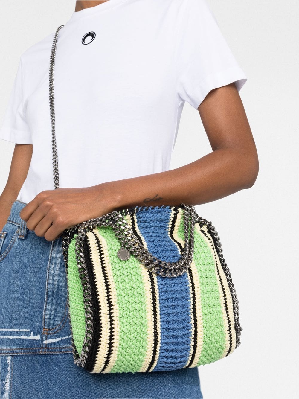 Stella McCartney's Falabella style has been updated in several guises since its debut in 2010. This mini tote bag has been crafted from a crochet knit and is finished with signature whipstitched chain-link detailing.