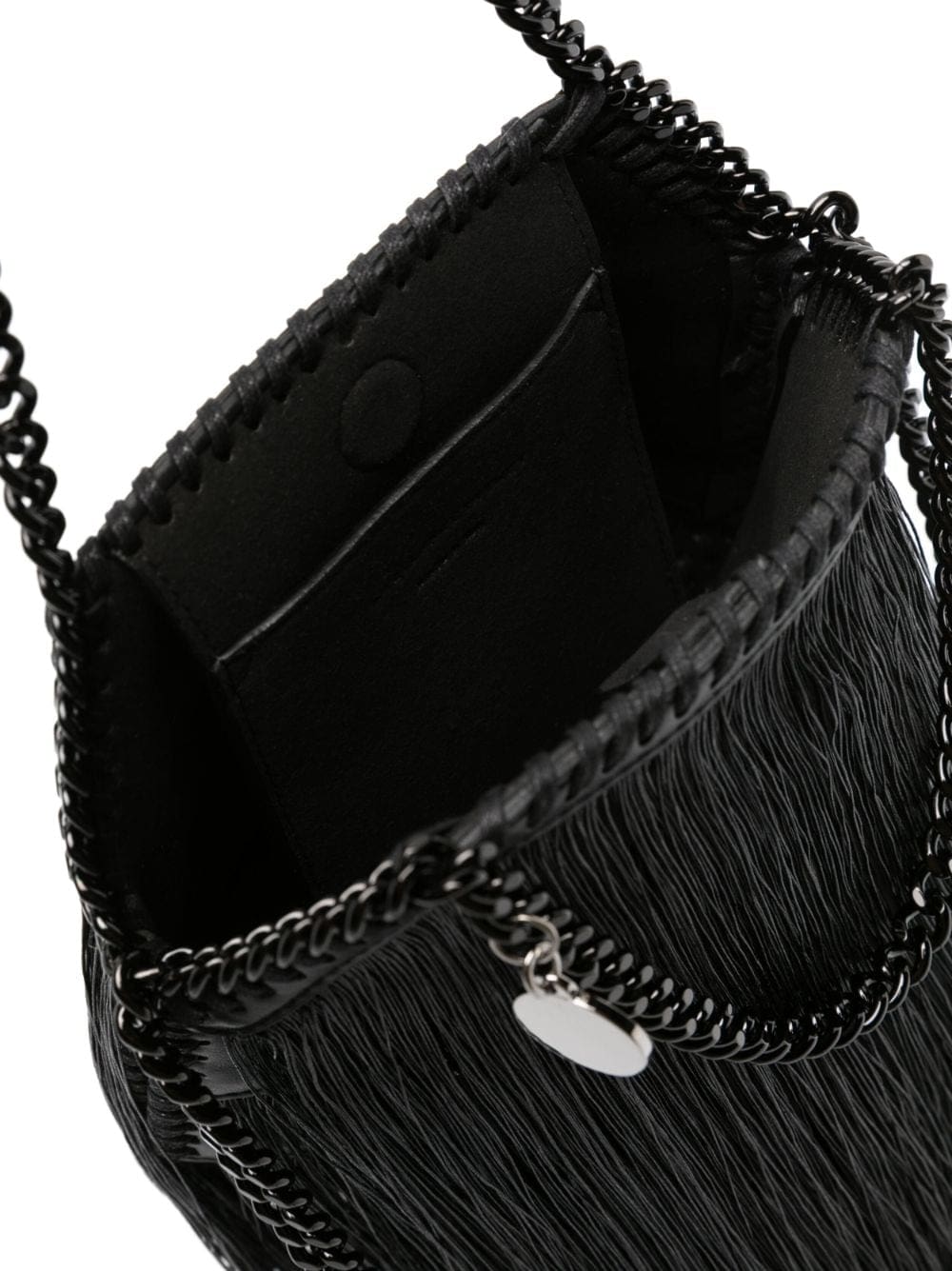 Stella McCartney's iconic Falabella tote bag has become indistinguishable from the brand, defined by its soft square silhouette and diamond-link chain trim. It appears here reimagined in a Mini size with a bold fringed construction for contemporary appeal.