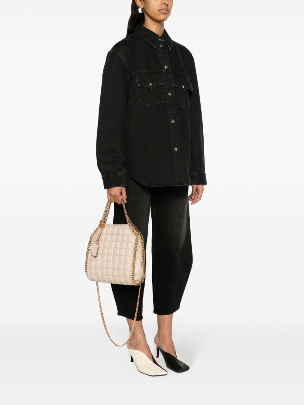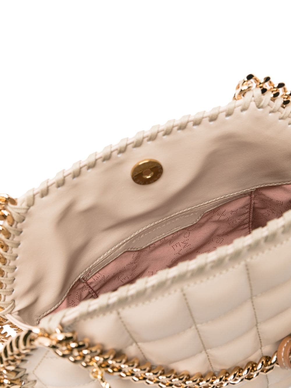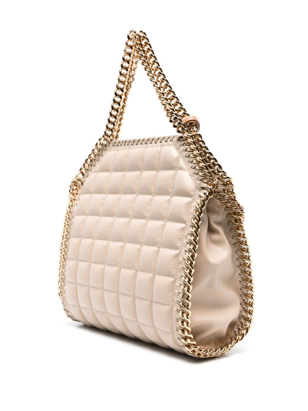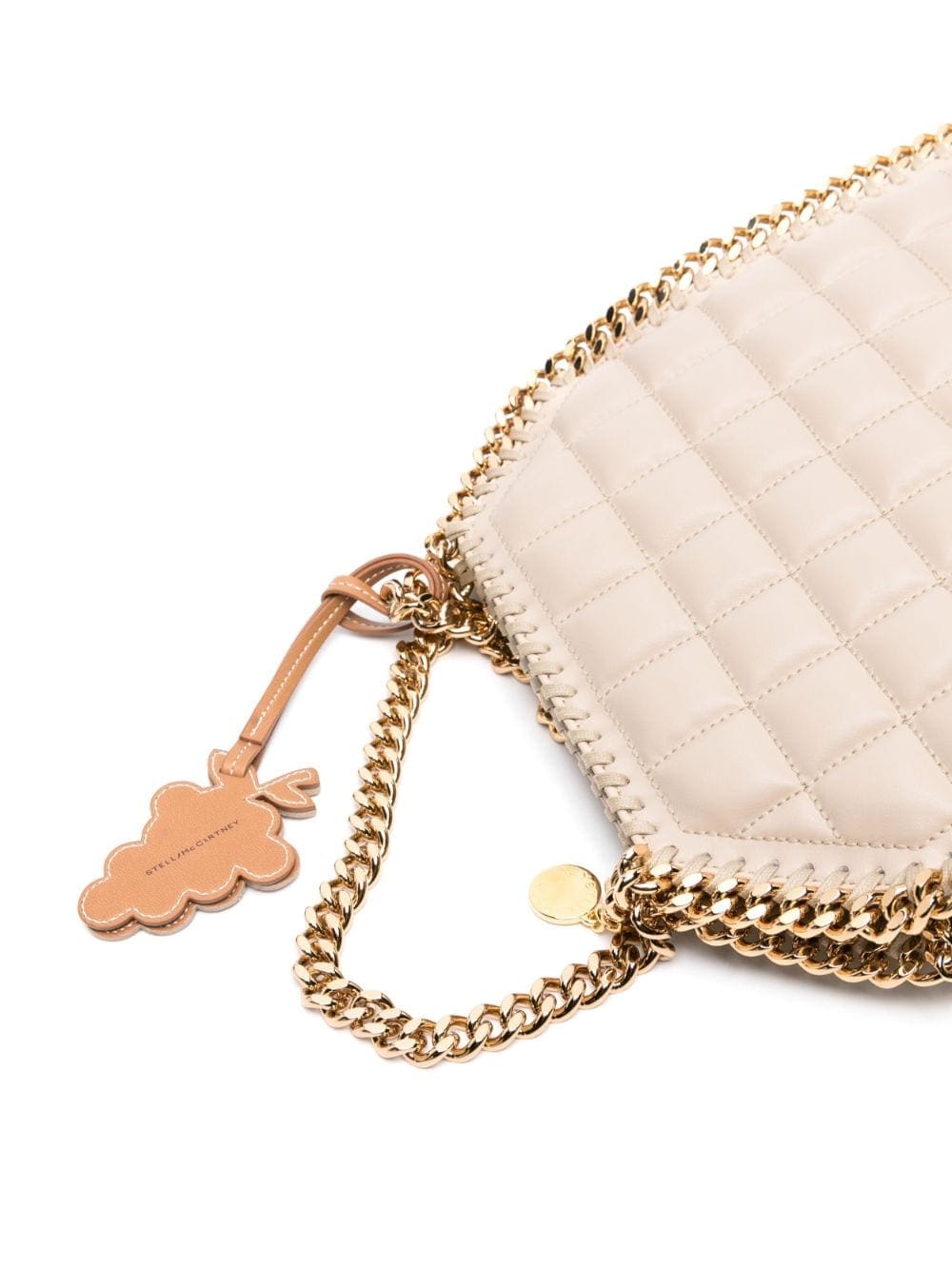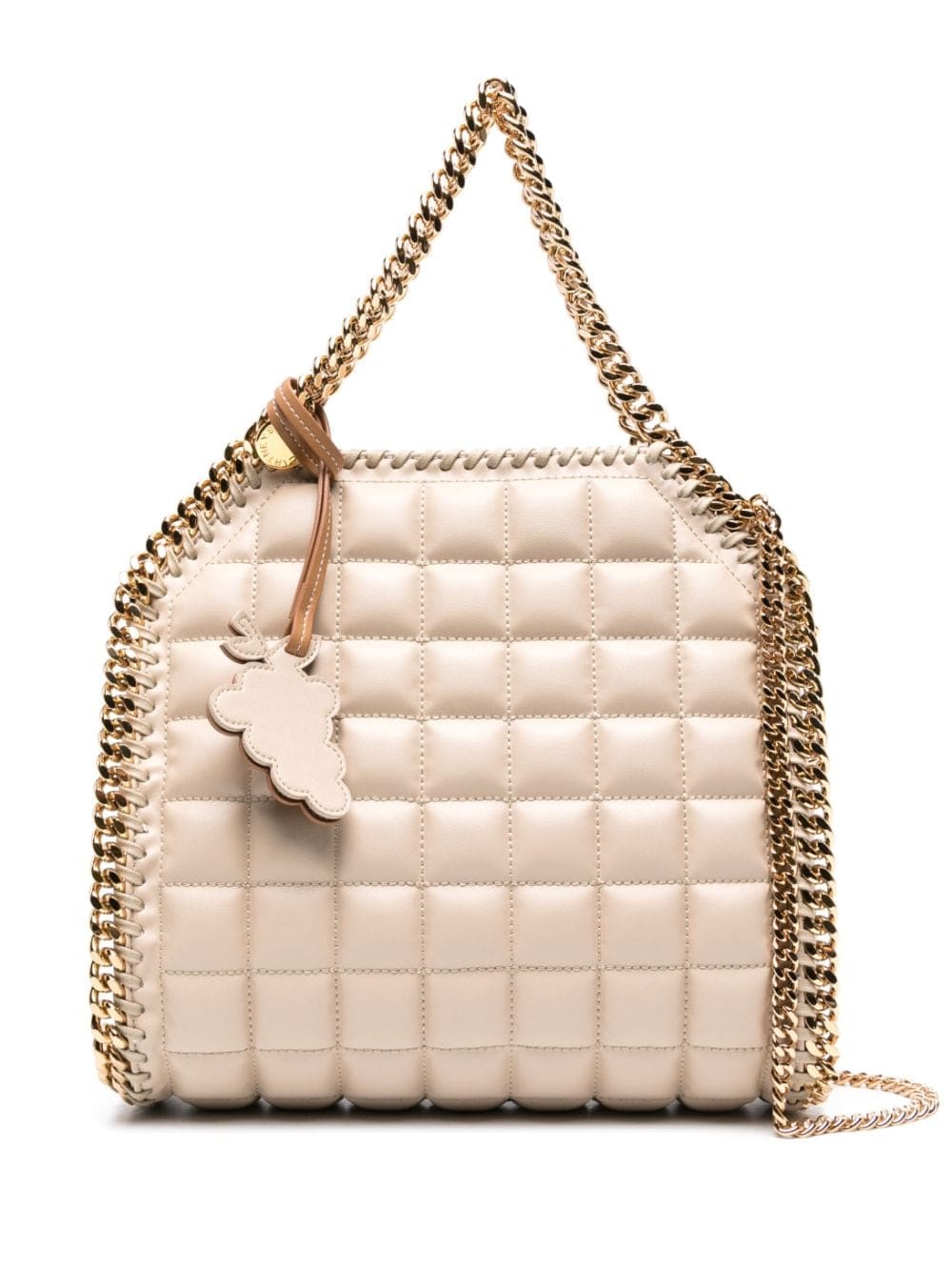 A new version of Stella McCartney's iconic Falabella, this tote bag has a quilted construction. Appearing in a light beige colourway, the signature silhouette is recognisable thanks to its diamond-cut chain trim, which is seen here in a gold-tone.
