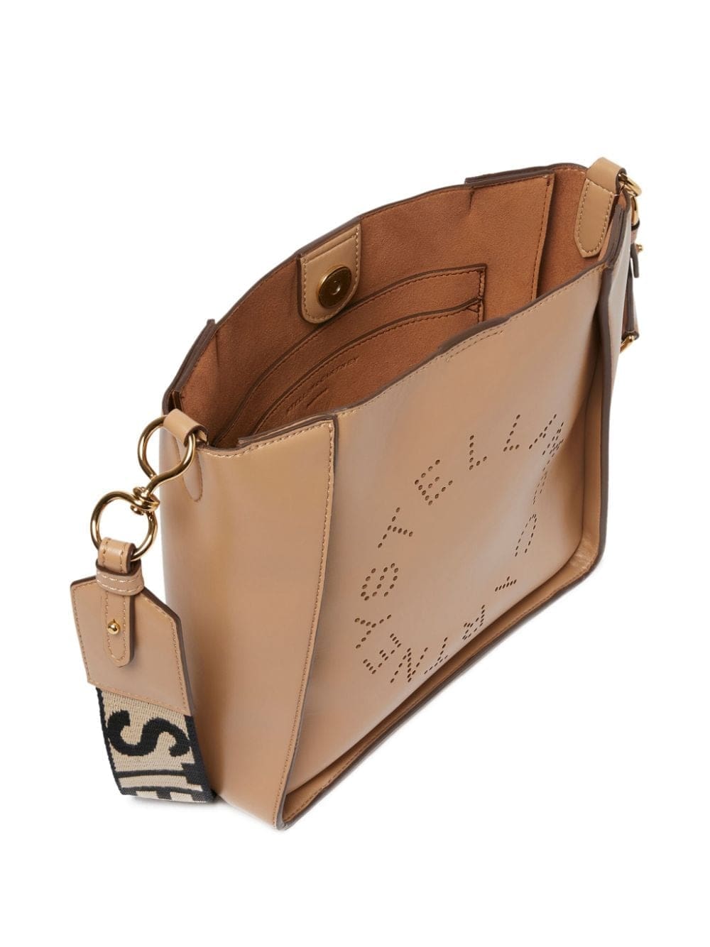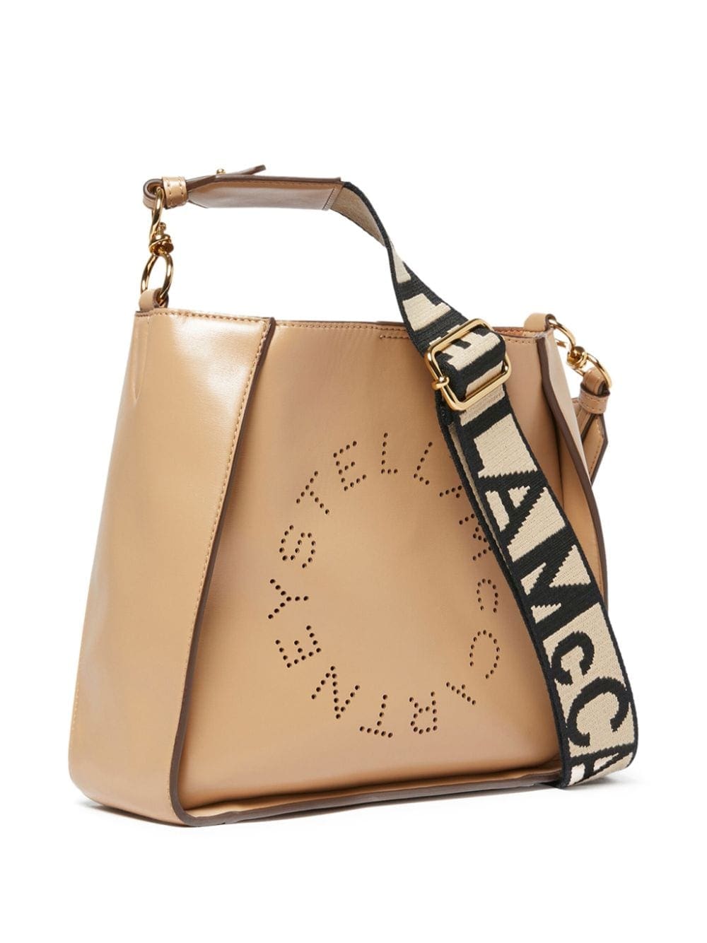 Stella McCartney updates its signature perforated-logo bag in a beige hue. Made from artificial leather as part of the brand's sustainability mission, it comes with a detachable and adjustable logo-jacquard shoulder strap.
