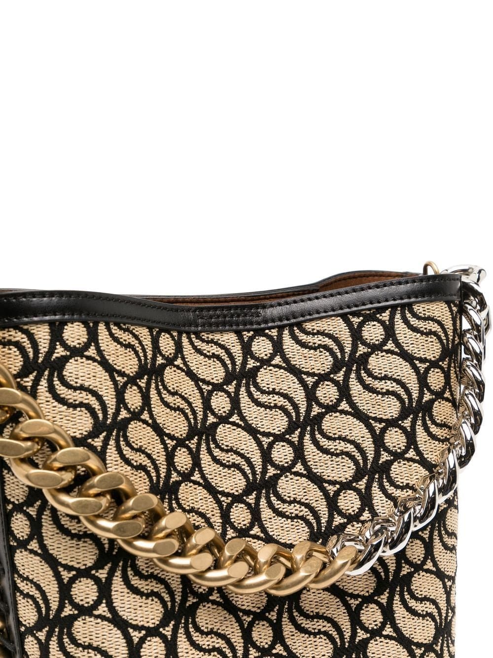 brown/beige/black canvas wave print silver-tone hardware open top single chain-link top handle main compartment Conscious: We've partnered with Good On You – an ethical agency that rates how sustainably brands perform. This product comes from a brand that performs well in relation to their impact on animals.
